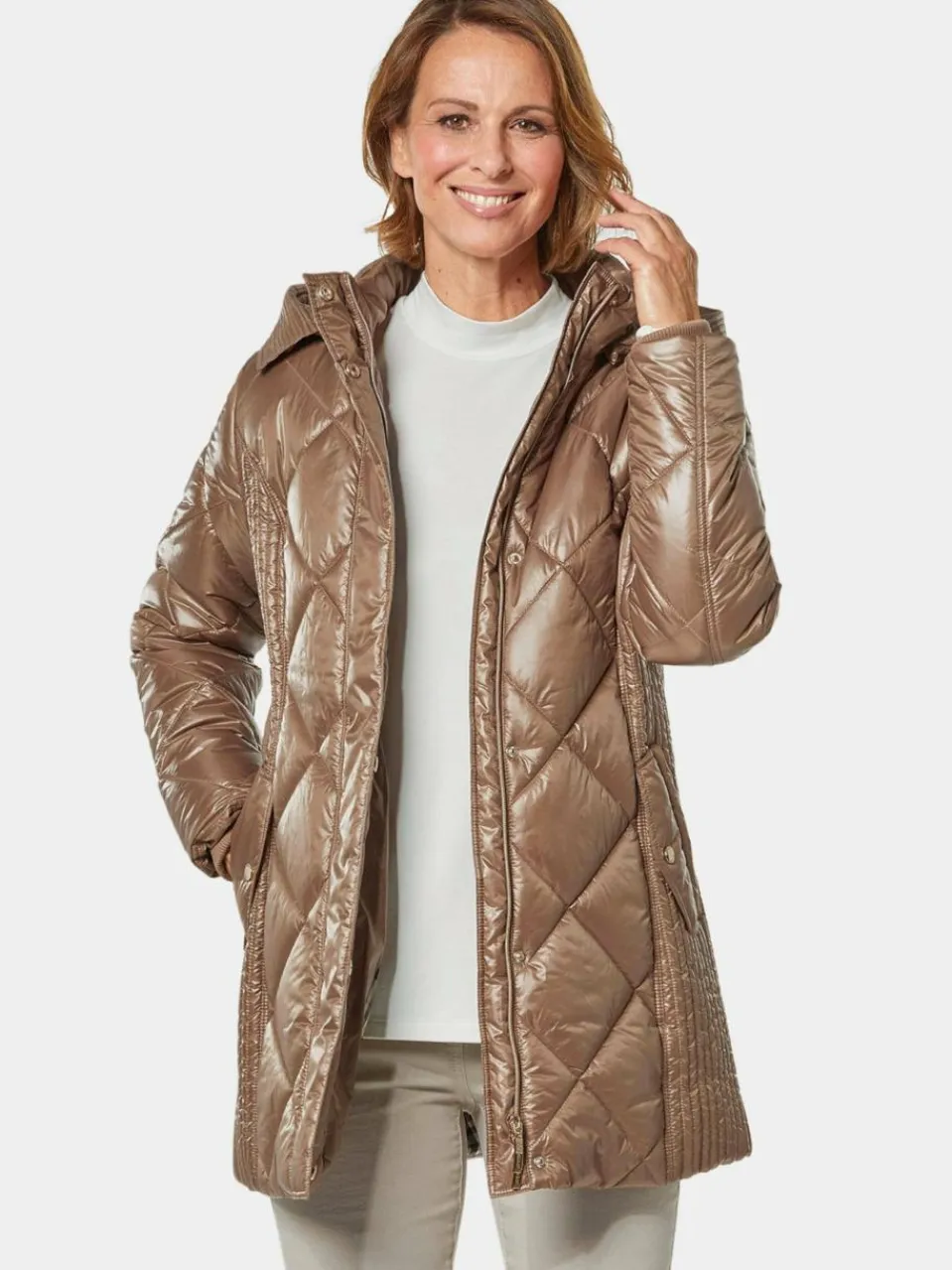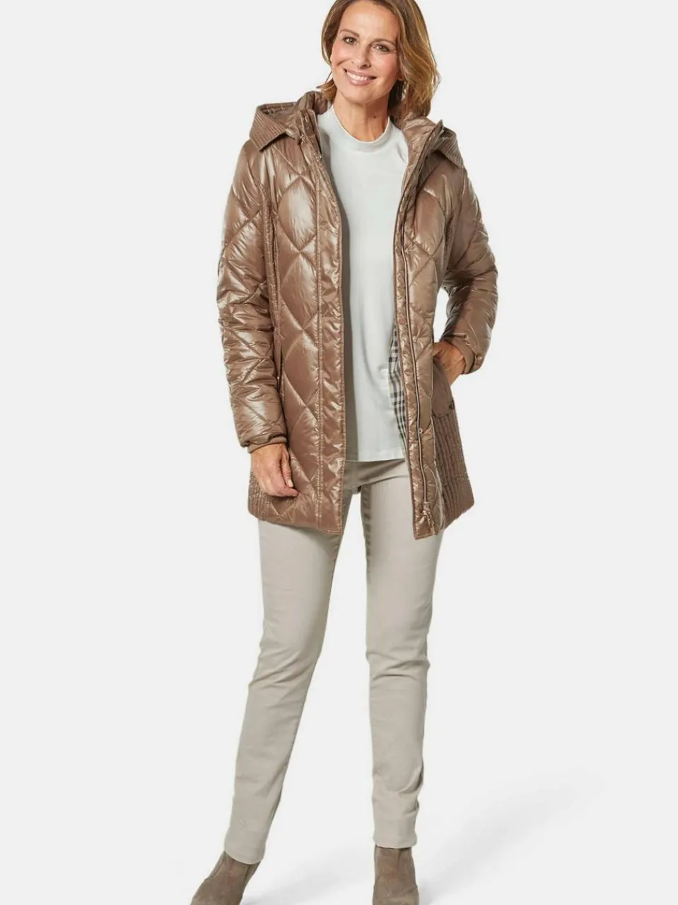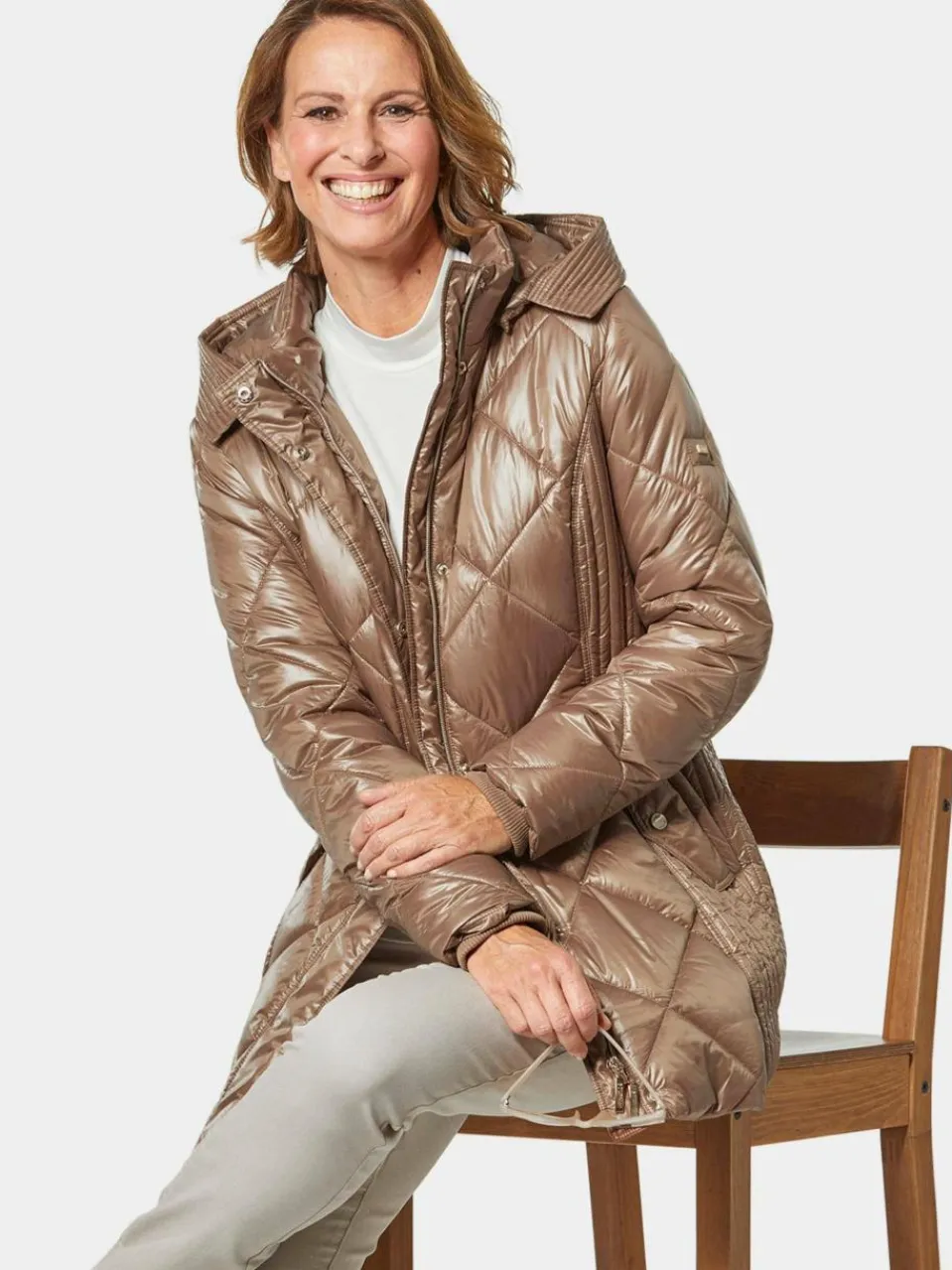 Damen Goldner Jacken & Westen>Damen Longsteppjacke – Longsteppjacke mit hübschem Innenfutter