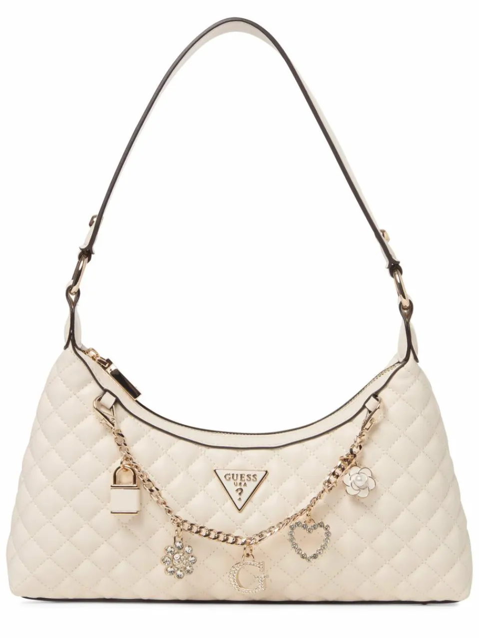 Die gesteppte Kunstleder-Qualität und die funkelnd verzierten Logo-Details zeichnen die GUESS Schultertasche Everlee als charmantes Accessoire mit verspieltem Glam-Faktor aus.
