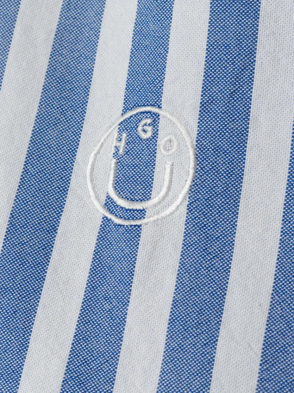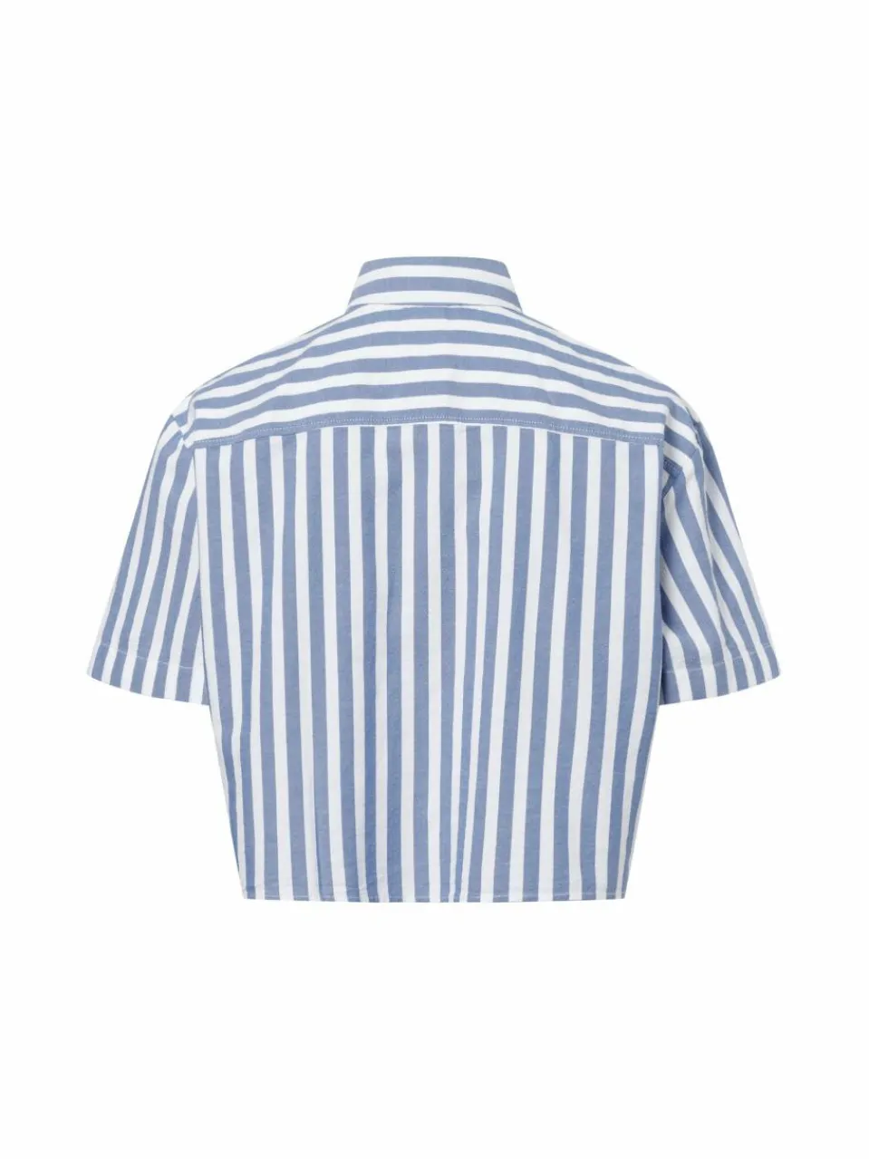 Die Eleisa_B Kurzarmbluse von Hugo bietet einen lässigen Wide Fit mit Cropped-Schnitt für einen modernen und trendigen Look. Die dezente Labelstickerei auf der Brust verleiht der Bluse eine elegante Note.