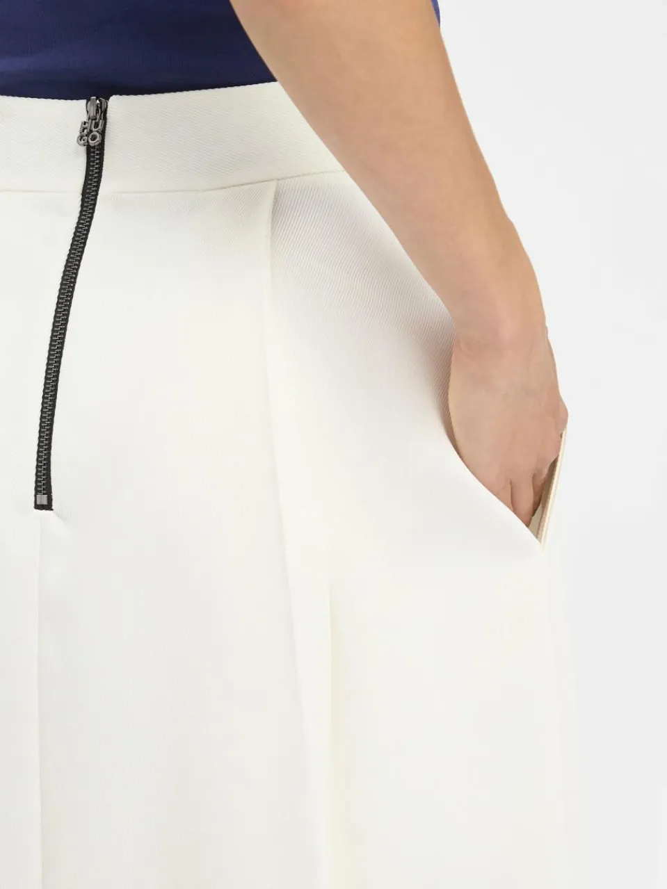 Falten am Bund geben dem HUGO Rock Romila seinen schmeichelnden Fall und harmonieren perfekt mit der ausgestellten Silhouette.