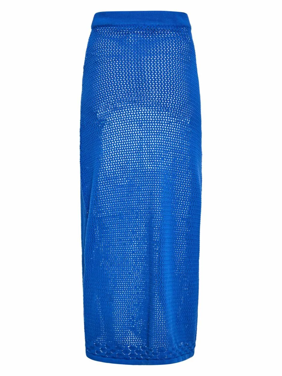 Elevate your summer wardrobe with this knitted long skirt. Featuring a fitted silhouette and textured pattern throughout, this high-waisted piece offers both style and comfort. The elasticated waistband ensures a perfect fit while the scalloped hem adds a decorative touch. Ideal for summer, the openwork details create a semi-transparent effect for a chic look.