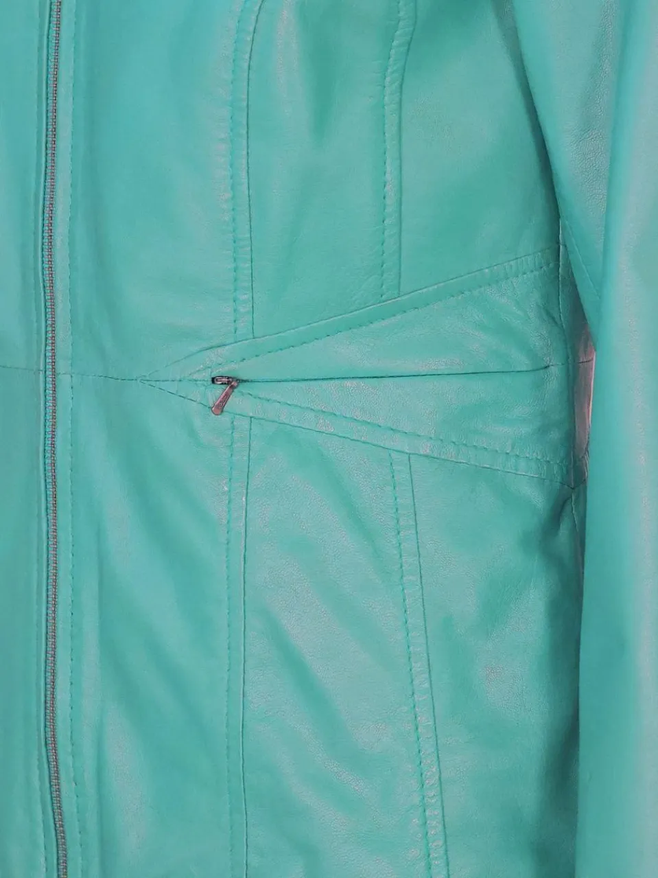 Diese Lederjacke setzt modische Akzente und bringt Farbe in jede Garderobe. Der taillierte Schnitt sorgt für eine feminine Silhouette, während das weiche Lammleder angenehmen Tragekomfort bietet. Ein schlichter Stehkragen und der durchgehende Reißverschluss unterstreichen das moderne Design sowie die Reißverschlusstaschen, welche den Look funktional ergänzen.