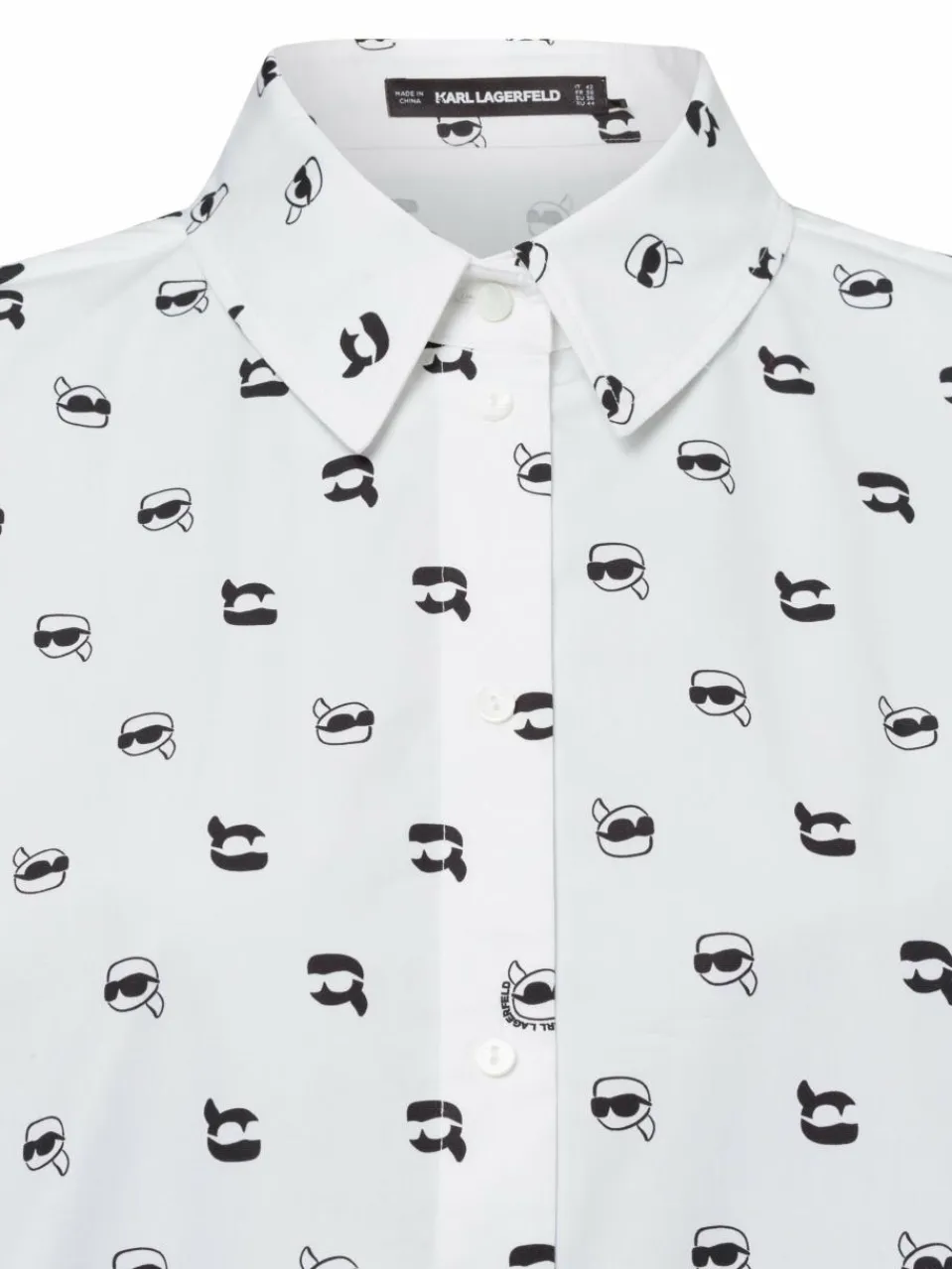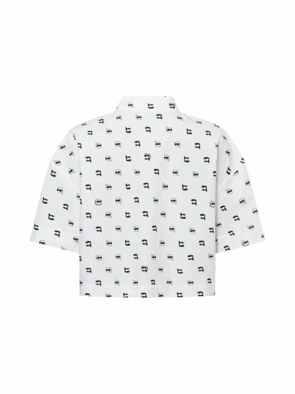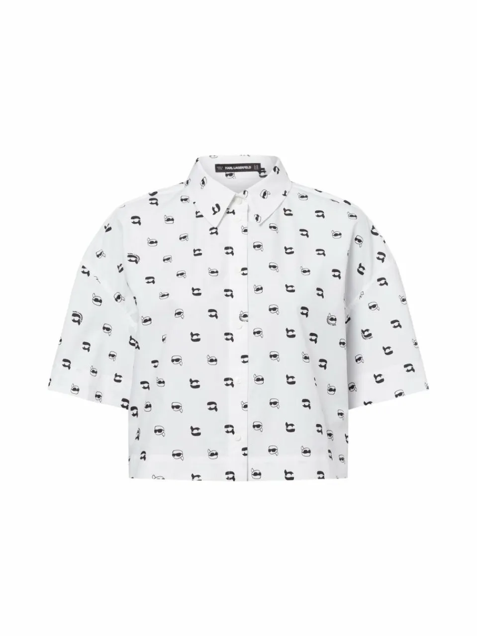 Die KARL LAGERFELD Ikon AOP Kurzarmbluse aus hochwertiger Baumwollpopeline begeistert mit ihrem eleganten Allover-Print und einer modernen, luftigen Silhouette.