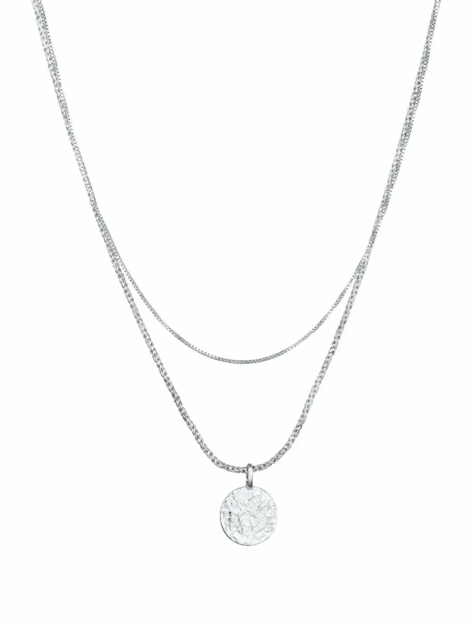 Vervollständige deinen sportlichen Jeans Style mit dieser modischen zweireihigen Herren Halskette. Die kunstvolle Kombination besteht aus einer venezianischen Kette und einer modischen Kordelkette mit auffälligen runden Münzanhänger. Das zeitlose Kettendesign dieses Schmuckstücks spricht für sich. Dieses exklusive Schmuckstück wird in einer eleganten Geschenk-Box geliefert.