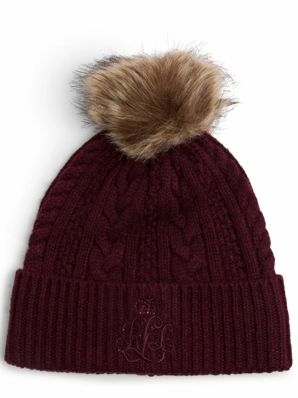 Die Strickmütze von Polo Ralph Lauren mit großem Pelzbommel ist angenehm zu tragen und hält schön warm.