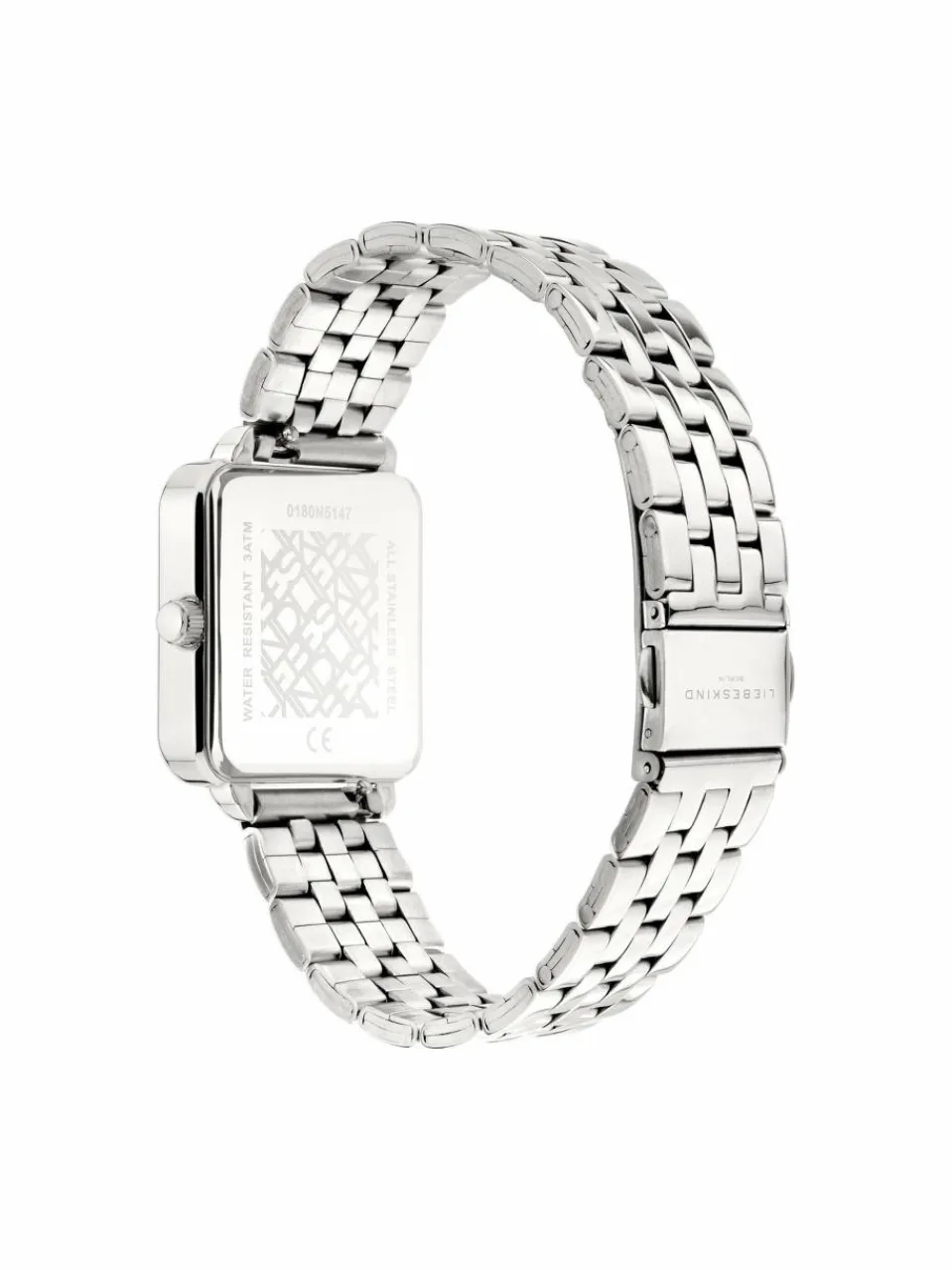 Dreizeiger Damenuhr der Marke LIEBESKIND BERLIN mit quadratischem Edelstahlgehäuse und hochwertigem Edelstahlarmband.