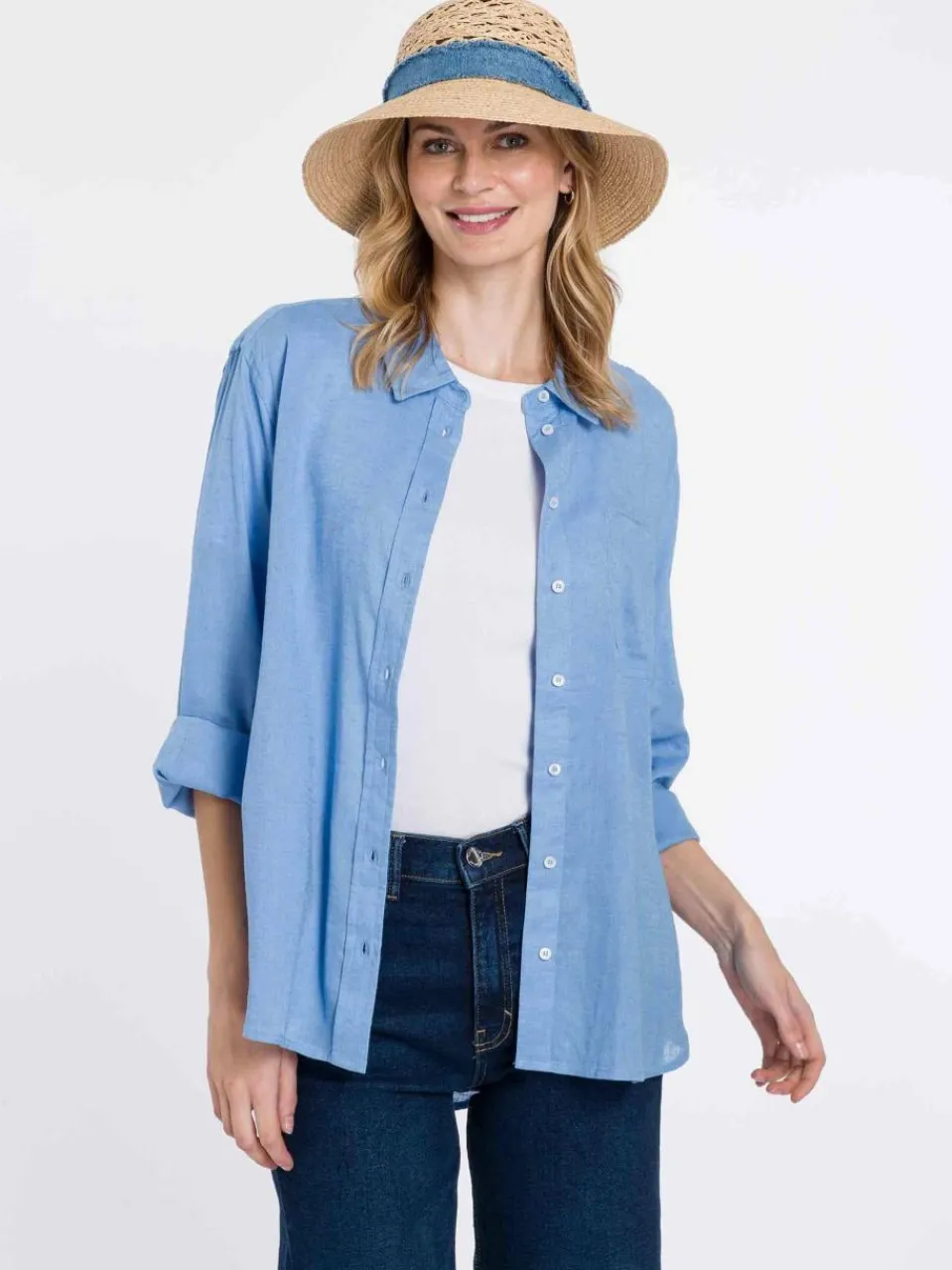 - Loevenich Strohhut mit gehäkelter Krone und Denim Hutband