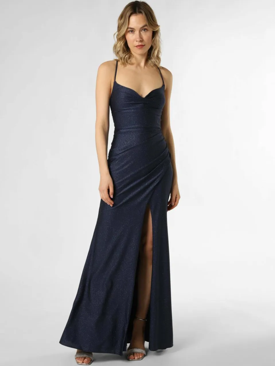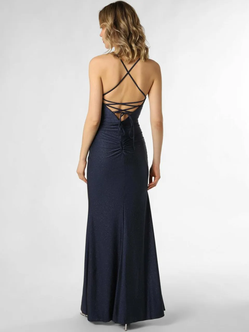 Verführerischer Beinschlitz, aufregender Rückenausschnitt mit eleganter Schnürung und feinster Allover-Glitzer on top: Das Kleid von Luxuar Fashion ist ein atemberaubender Hingucker.