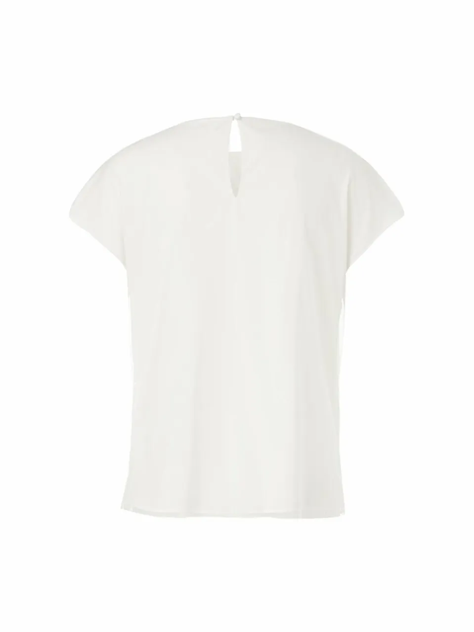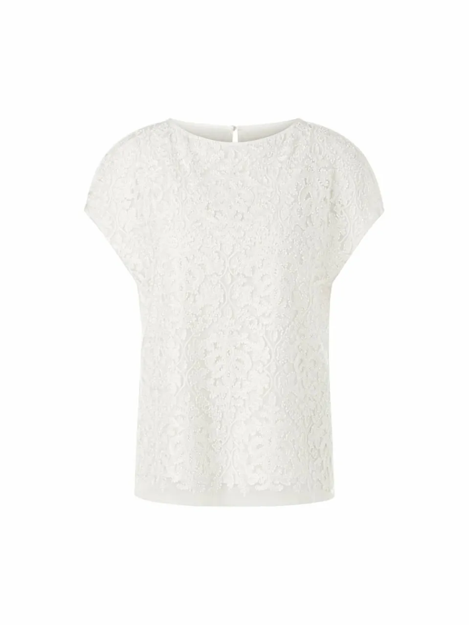 Der zarte Voile mit edler Stickerei verleiht dieser Bluse elegante Romantik-Vibes. Sie kommt im ärmellosen Schlupf-Design mit leichter Taillierung. Die Bluse hat einen Rundhalsausschnitt. Geschlossen wird sie mit einem überzogenen Knopf im Nacken.