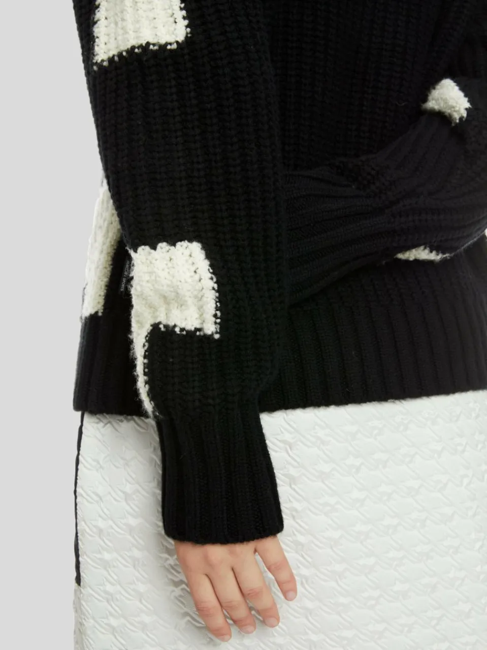 Highlight bei diesem Sweater ist das platzierte Chickcheck-Dessin im Vorderteil und am Ärmel. Mit seinem lockeren Rippen-Strick wirkt er wie handgefertigt. Dank der reinen Wolle ist der Pullover die perfekte Wahl für kalte Wintertage. Die Silhouette ist locker geschnitten und besitzt einen Rundhals-Ausschnitt.