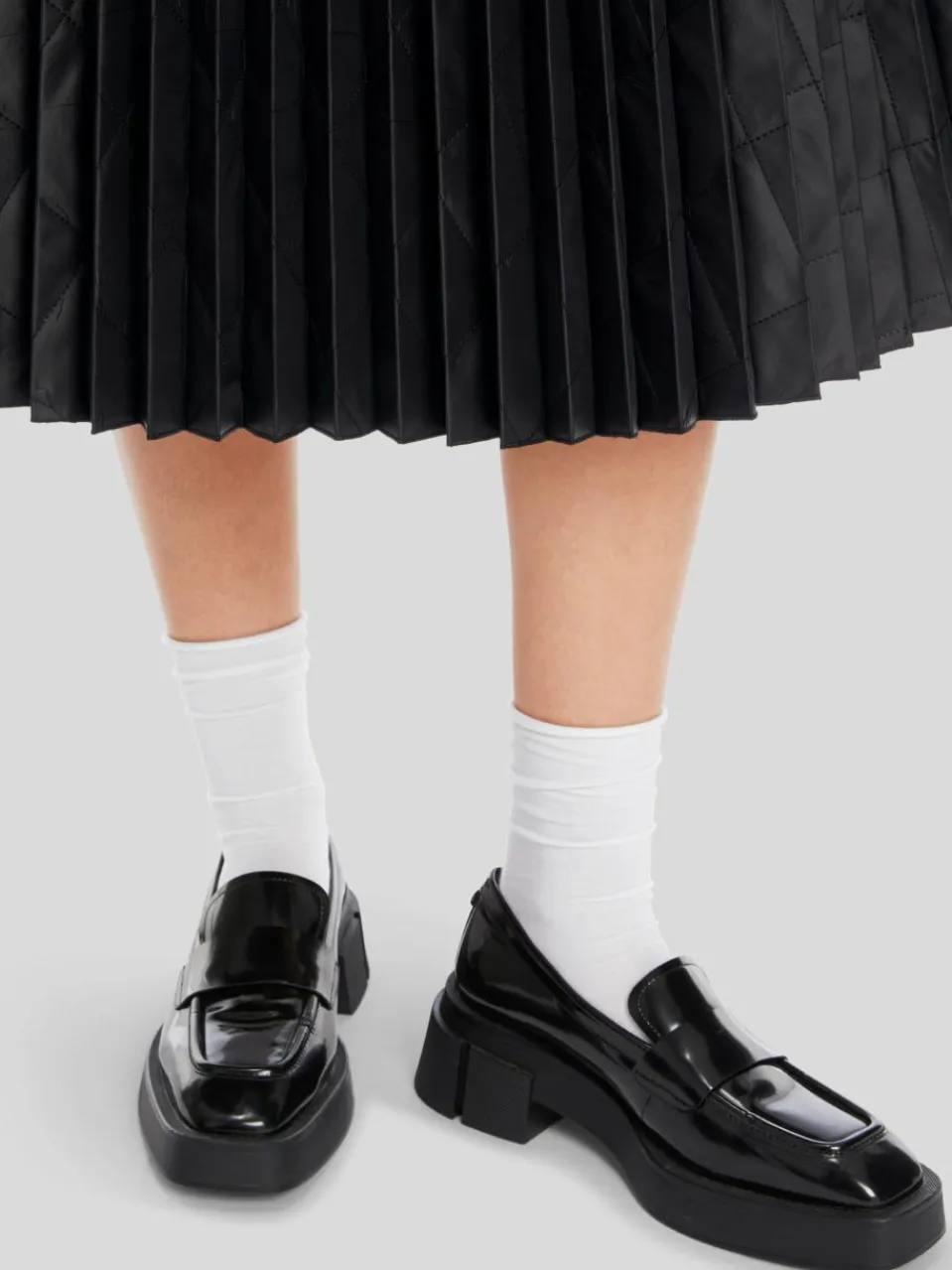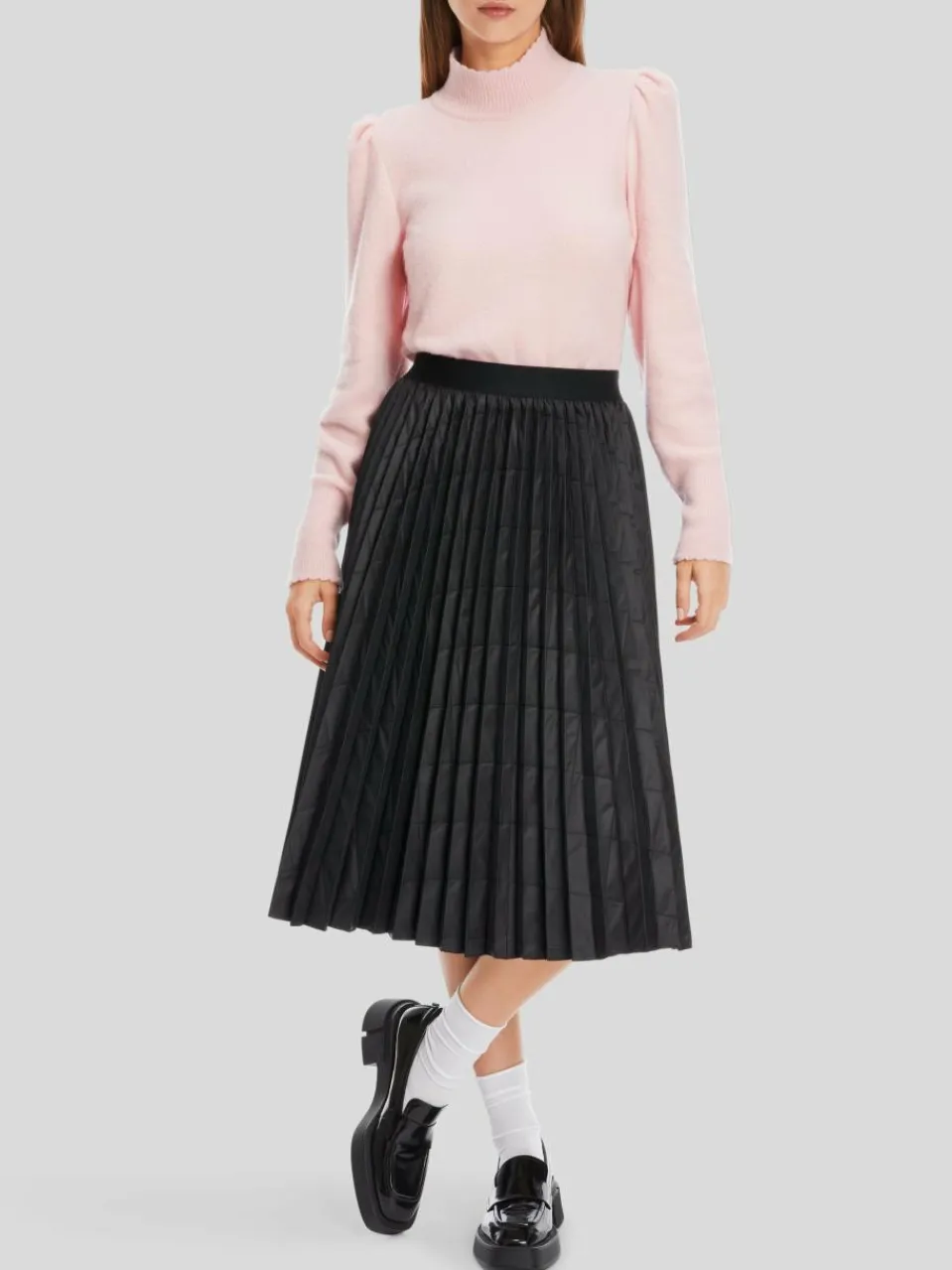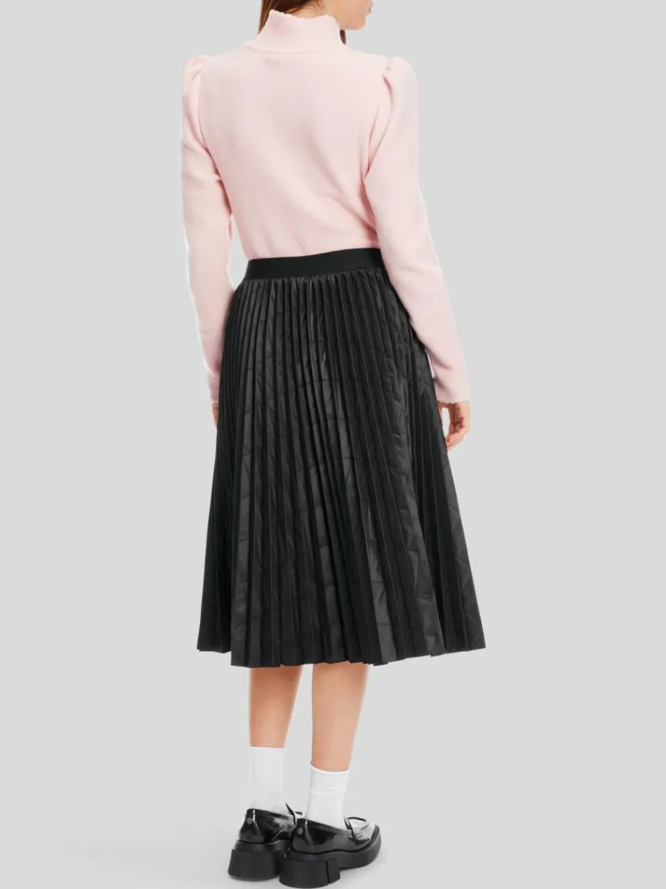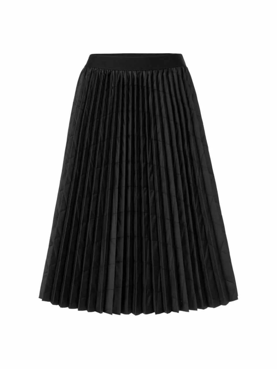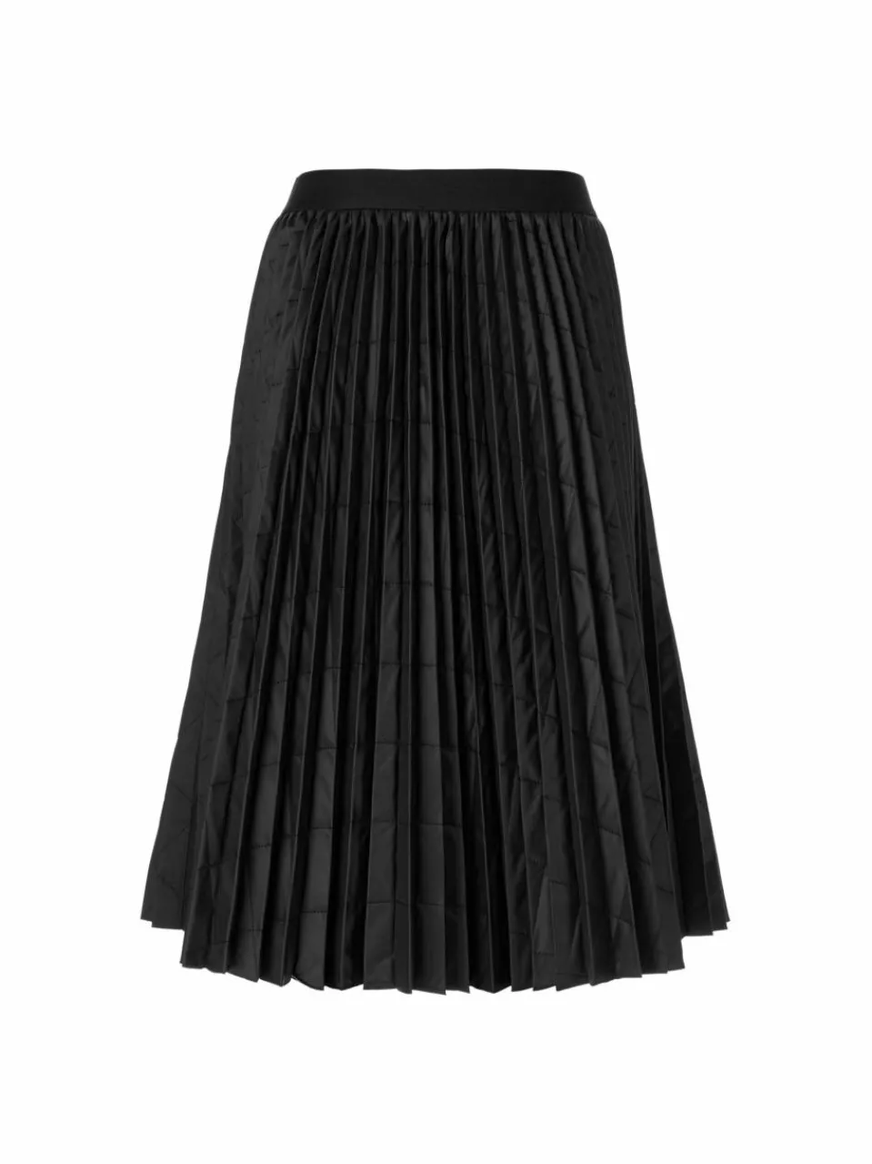 Eine wintertaugliche Version des trendigen Plisseerocks: Das Modell ist aus technischem Gewebe mit Karostepp. Im Zusammenspiel von Plissee und Steppmuster entsteht eine effektvolle Struktur. Die Taille ist mit einem Gummibund gearbeitet und der Saum offenkantig.