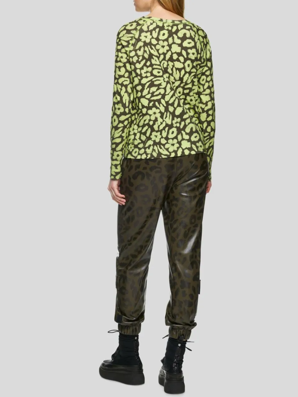 Langärmeliges Shirt mit Leo-Druck. Das Modell ist aus stretchigem Baumwoll-Jersey und schmal geschnitten. Es kommt mit einem erweiterten Rundhals.