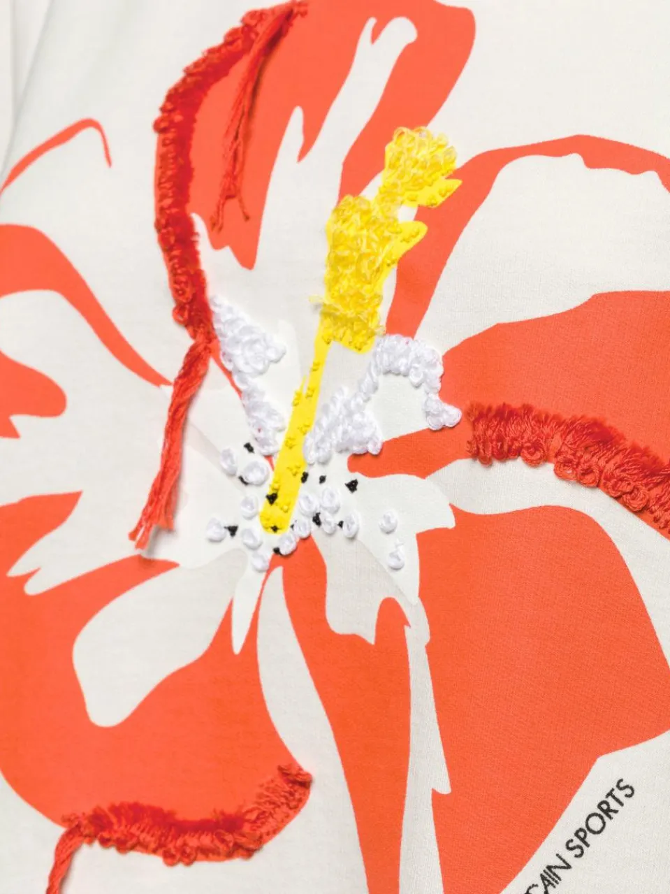 Sportlich und feminin: Der Marc Cain Sports Kapuzenpullover aus Baumwoll-Jersey überzeugt mit hochwertiger Stickerei und einem floralen Print, der ihm einen modernen, stilvollen Look verleiht.