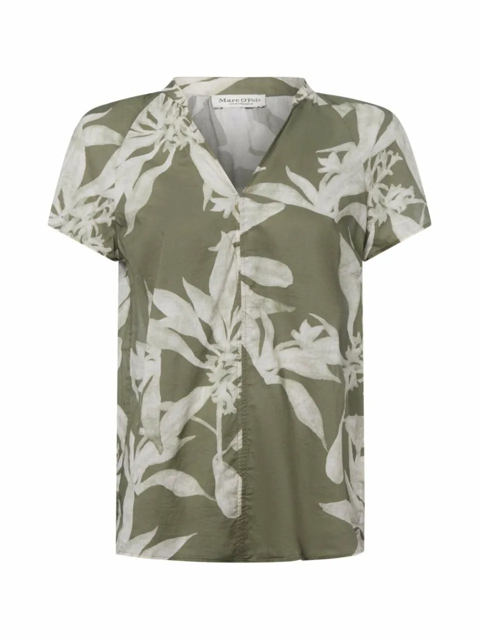 Leichte Bluse von Marc O’Polo aus reiner Baumwolle mit schmalem Stehkragen, V-Ausschnitt und kurzen Raglanärmeln – Teilungsnaht und cleaner Saum unterstreichen das minimalistische Design.