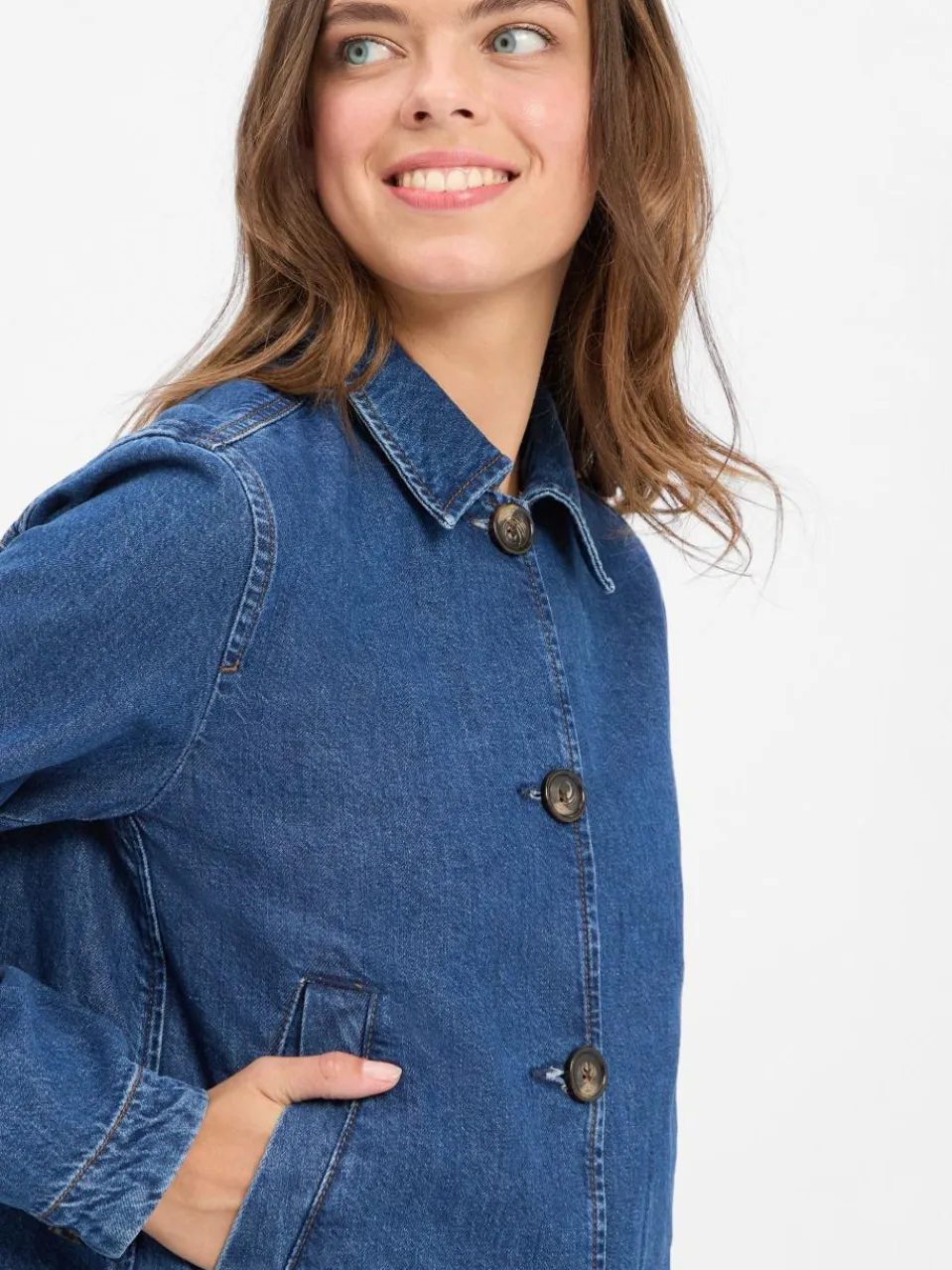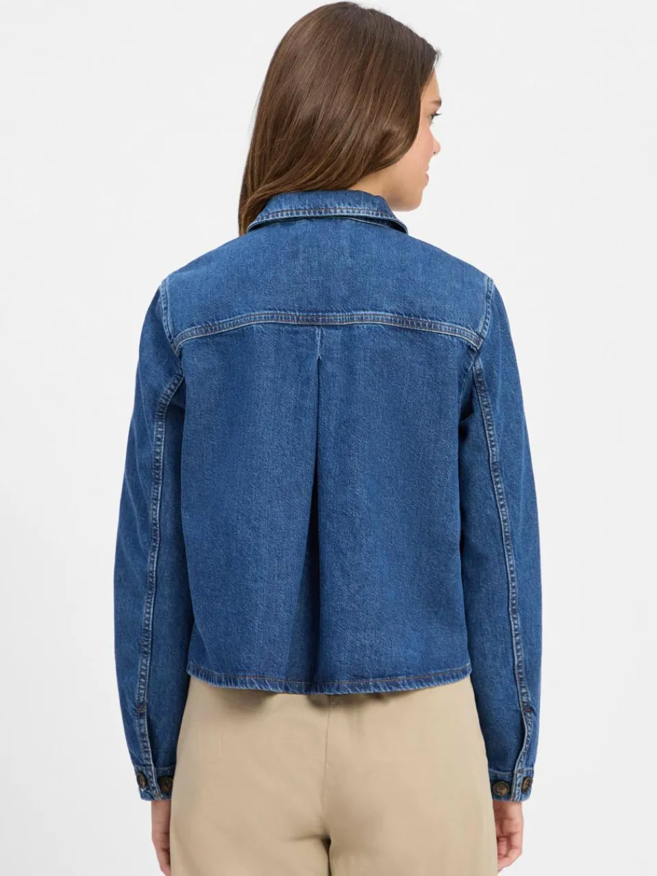 Die boxy Jeansjacke von Marc O’Polo Denim punktet im Overshirt-Look mit Umlegekragen, Knopfleiste und Eingrifftasche und erhält durch die rückseitige Kellerfalte ein verspieltes Upgrade.