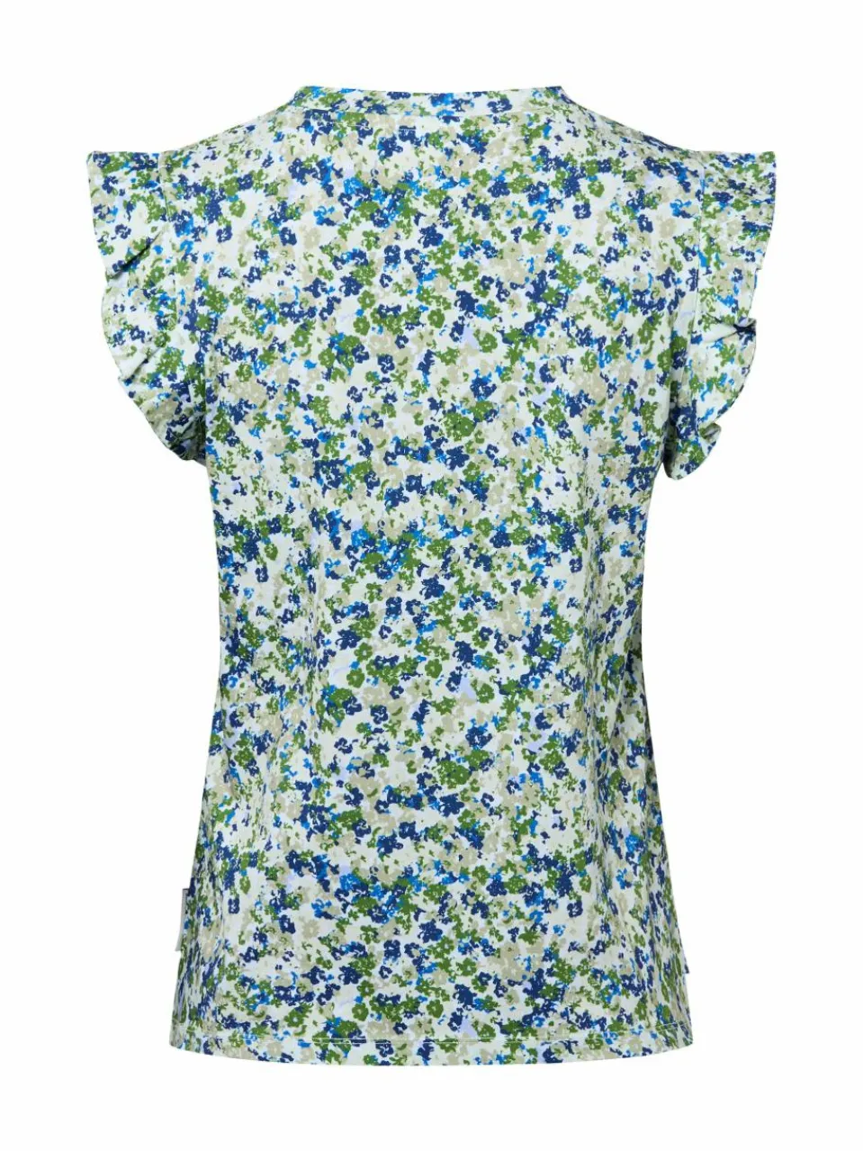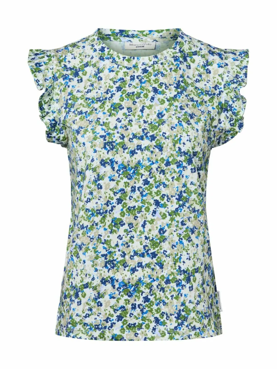 Das Marc O’Polo T-Shirt mit Millefleurs-Print und hübschem Rüschen-Detail ist die perfekte Kombination aus femininem Charme und lässigem Basic.