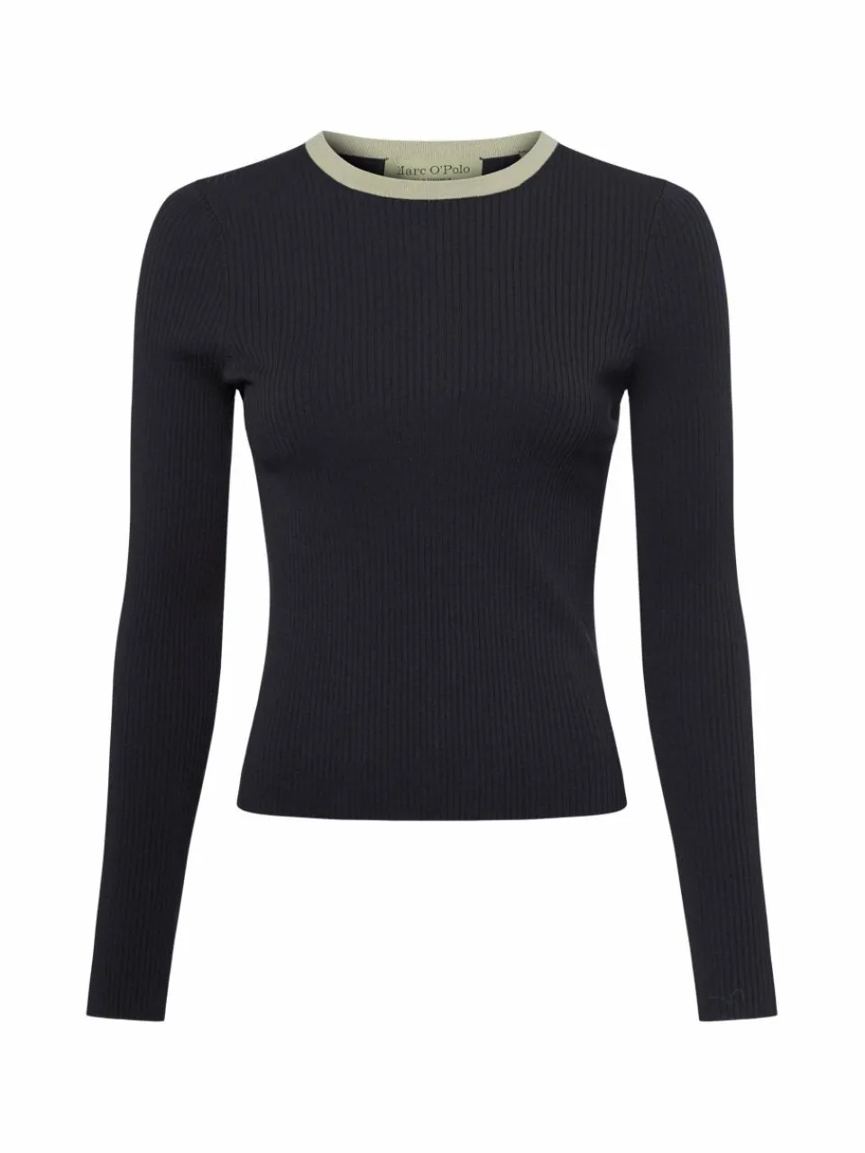 Der aus einem feinen Viskose-Mix gefertigte Rippstrickpullover von Marc O’Polo schmiegt sich leicht an die Silhouette, während der Rundhalsausschnitt einen schönen Kontrast im Design setzt.