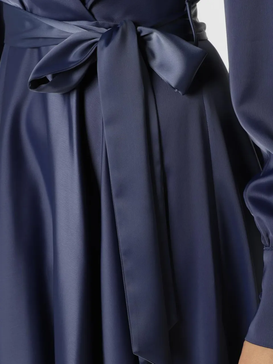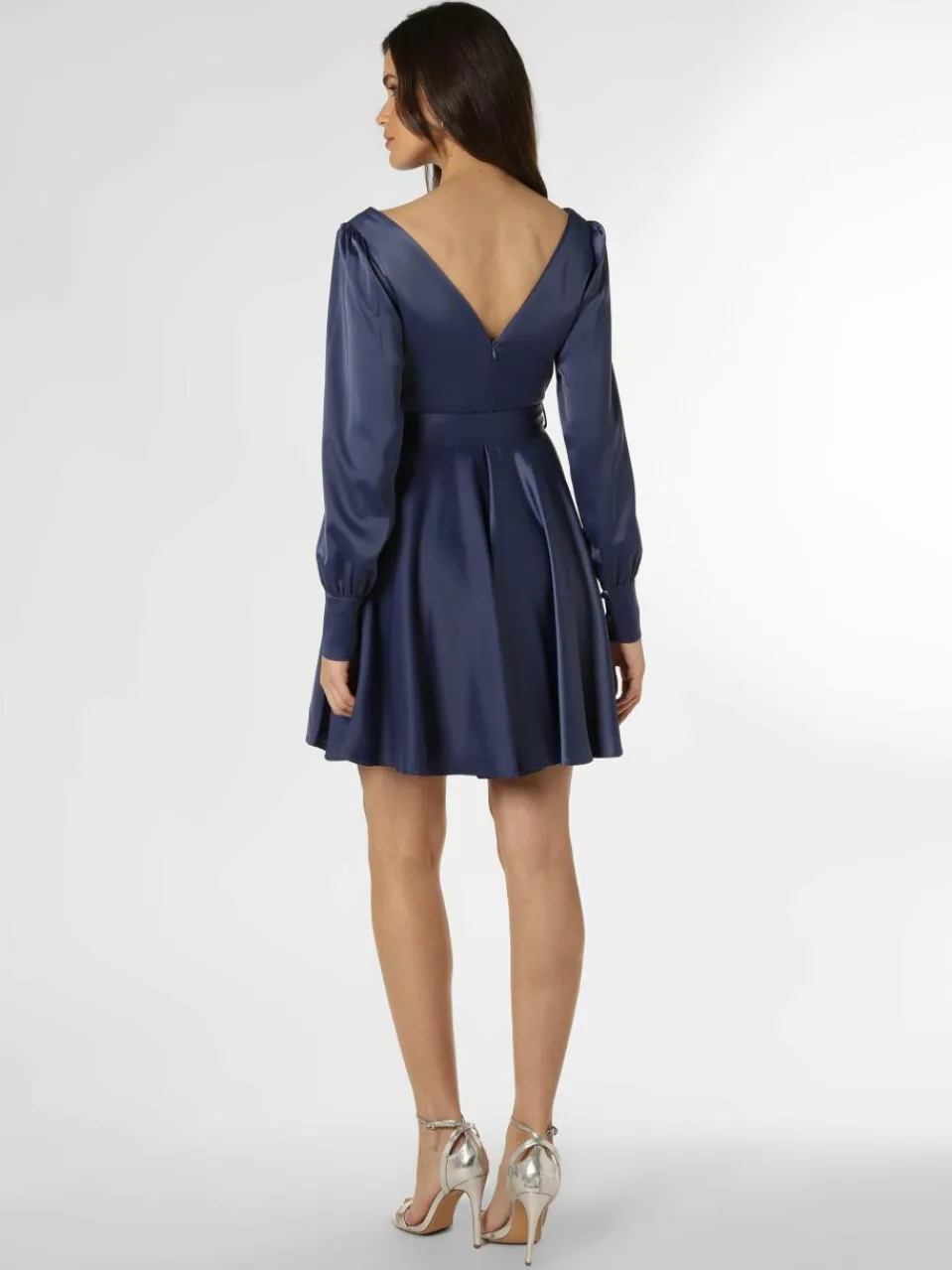 Dank der fließenden Satin-Qualität kommt das Cache-Coeur-Design des kurzen Abendkleids von Marie Lund besonders elegant zur Geltung.