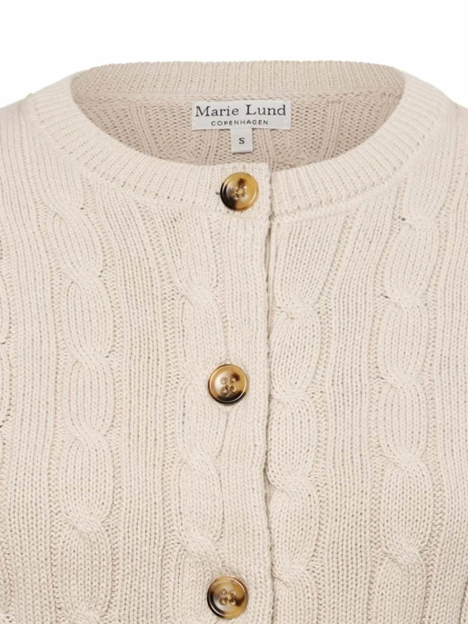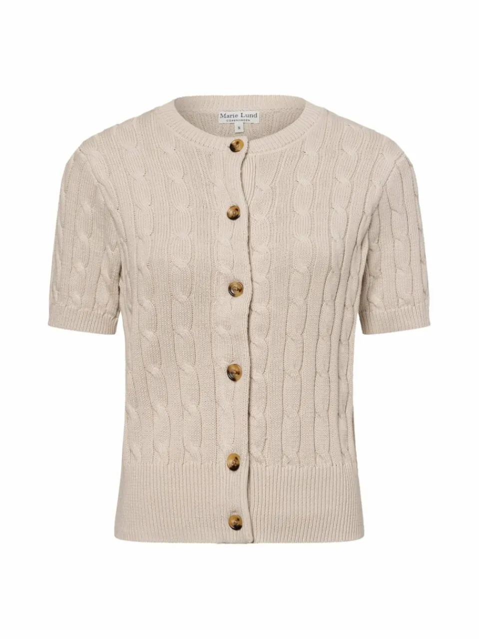 Diese stilvolle kurzärmelige Strickjacke von Marie Lund überzeugt mit einem groben Zopfstrickmuster, einem modernen Kurzarmdesign und einem markanten Verschluss mit großen Knöpfen – perfekt für einen lässigen, aber eleganten Look.