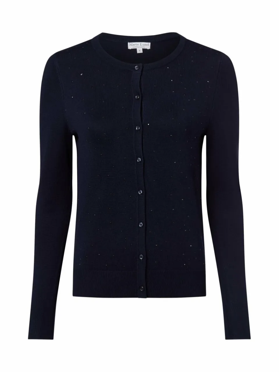 Die applizierten Schmucksteine bringen die klassische Strickjacke von Marie Lund aus feinem Viskose-Mix wunderschön zum Funkeln.