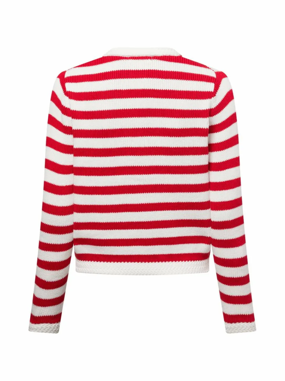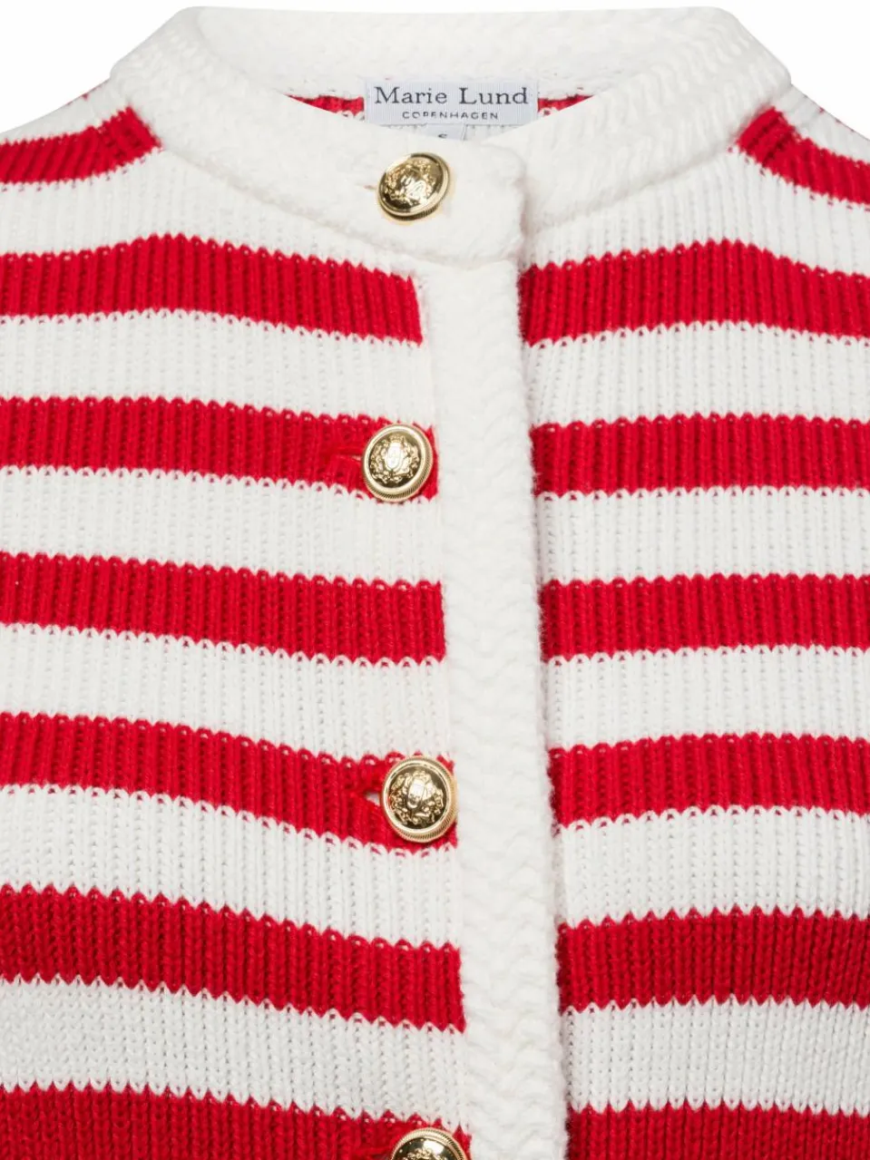Die Marie Lund Streifen-Strickjacke aus reiner Baumwolle vereint maritimes Design mit höchstem Tragekomfort und vielseitiger Kombinierbarkeit.