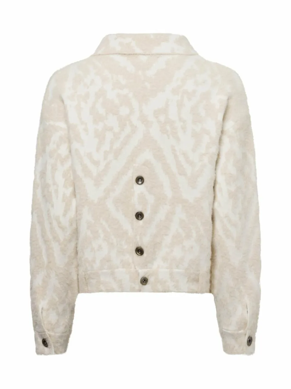 Rückseitige Knopfleiste, geprägtes Allover-Design, weiche Strick-Qualität: Die Marie Lund Jacke hebt sich mit feinen Details stilvoll hervor.
