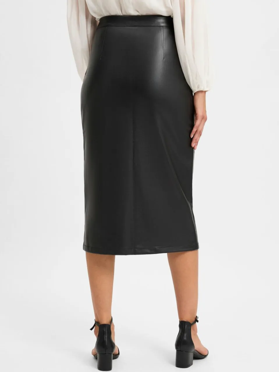 Der Midi-Rock aus Kunstleder von Marie Lund ist edel und stylish zugleich.