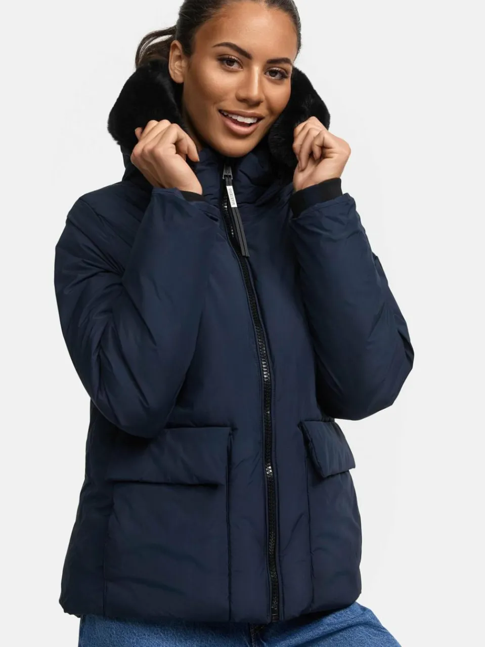 - Basic Damen Winterjacke mit abnehmbarem Kunstfell