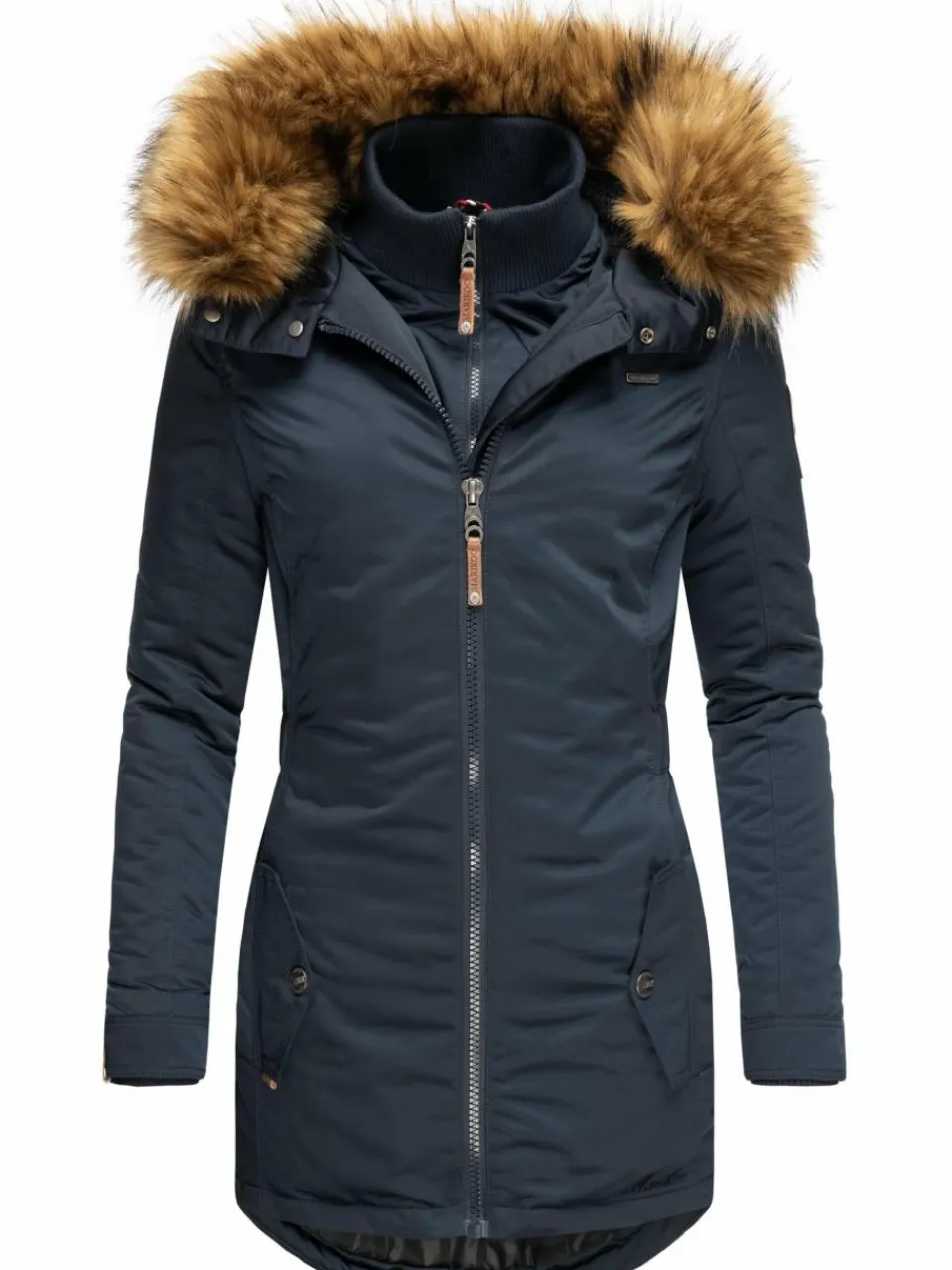 - Modische Winterjacke mit großer Kunstfellkapuze und Doppelzipper