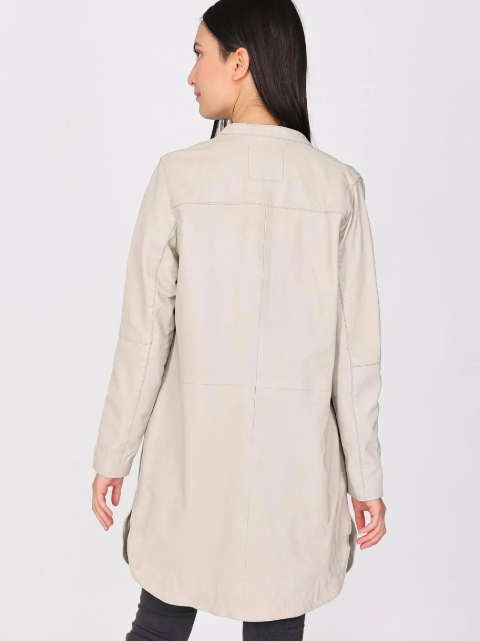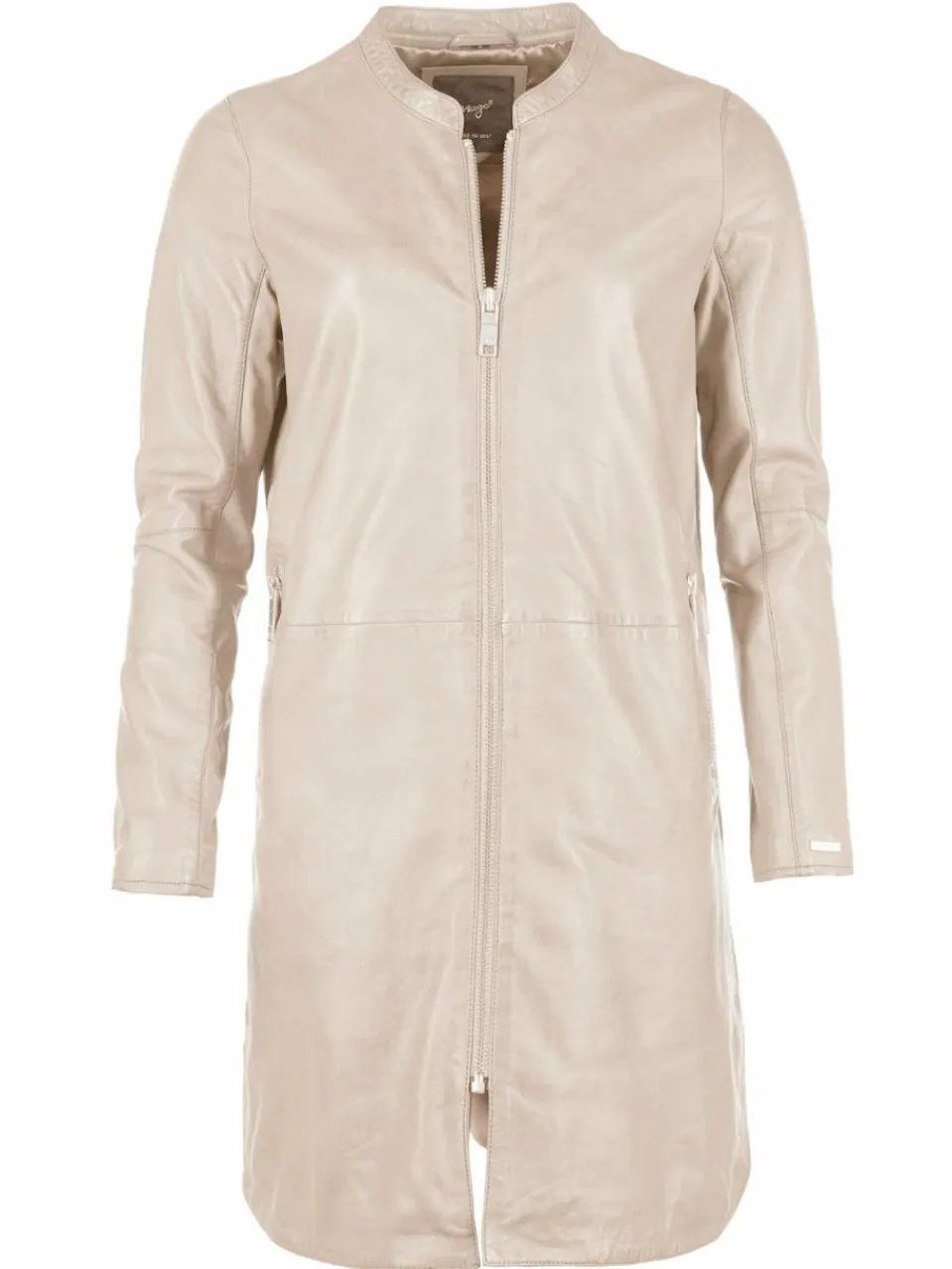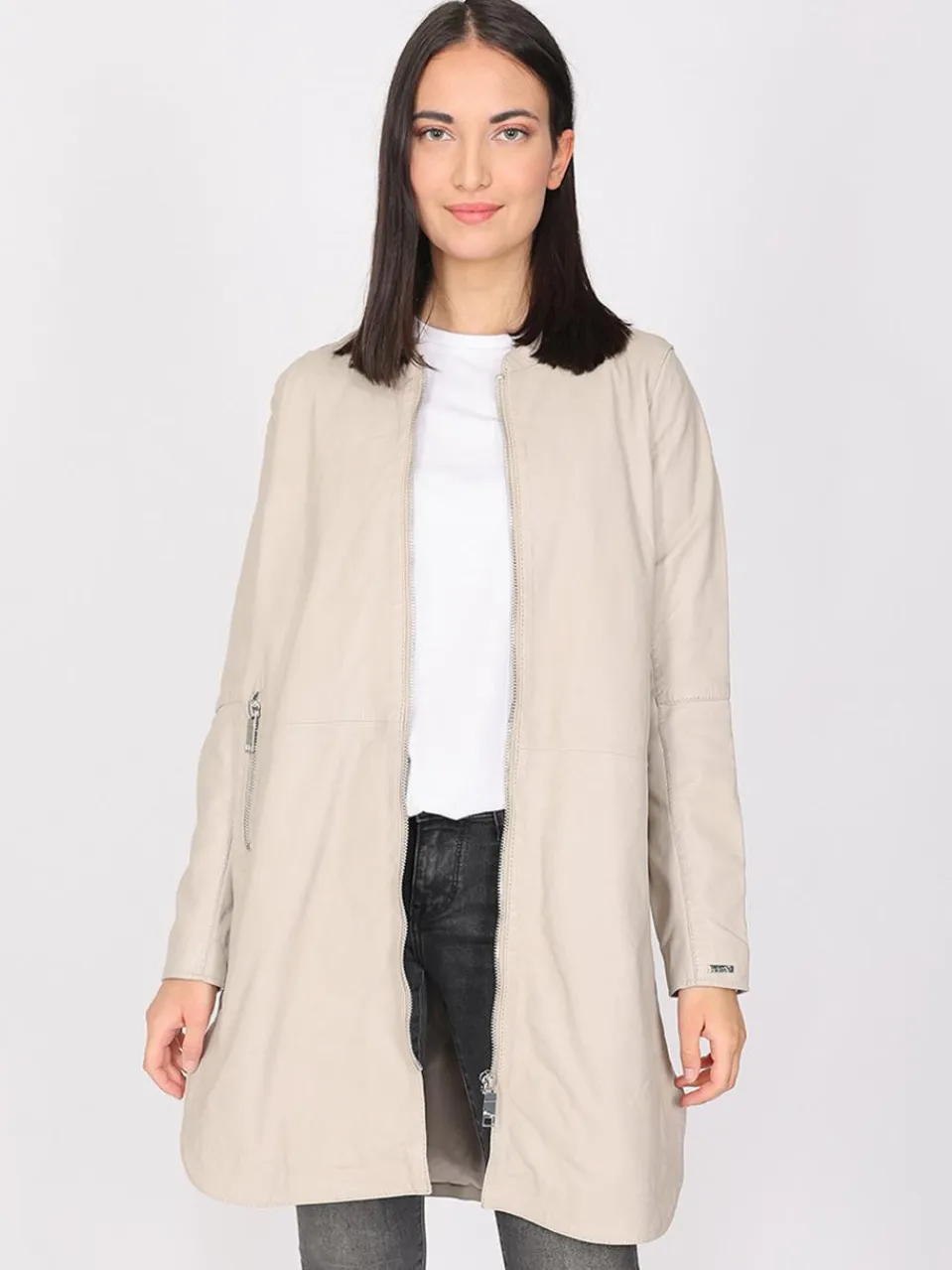 Ein absolutes ‚Must Have‘ – ist dieser stylische Ledermantel der Trendmarke Maze. Durch die silberfarbenen Zipper wird dieser geschmeidige Ledermantel zu Ihrem neuen Lieblingsstück. Dieser Mantel lässt sich gerade schließen und besitzt einen angenehmen und kurzen Stehkragen.