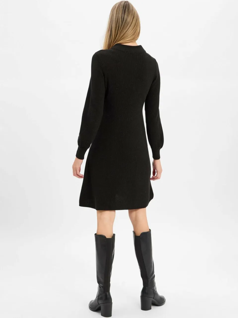 Mit Boots, Loafern oder Sneakern kombiniert: Das Monari Strickkleid zeigt sich besonders wandelbar und begeistert mit feinen Glanzfäden.