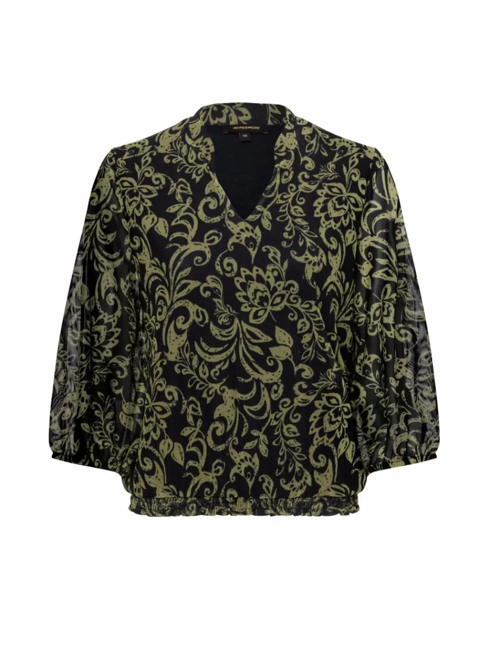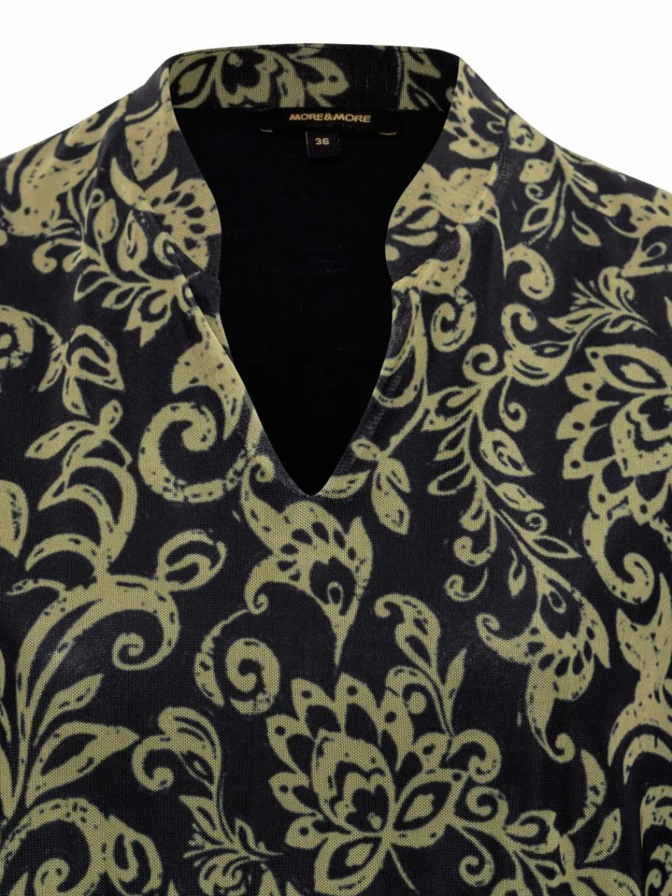 Mesh trifft Jersey: Das More & More Blusenshirt kombiniert einen transparenten Oberstoff mit einem blickdichten Jerseyfutter für besonderen Tragekomfort.