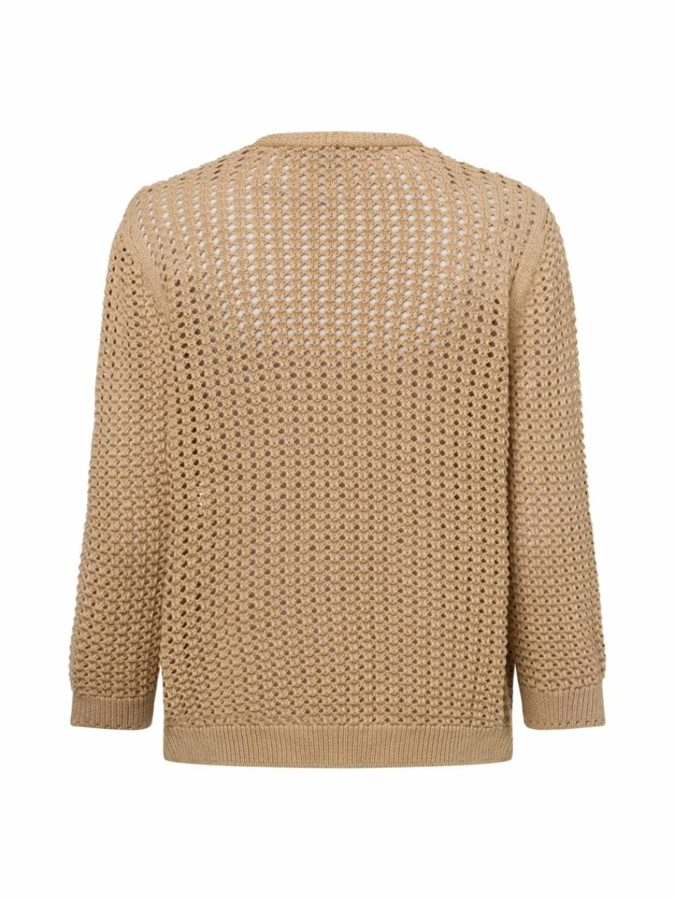 Die More & More Strickhülle aus Lochstrick im Baumwoll-Kunstfaser-Mix kombiniert luftige Leichtigkeit mit einem modernen, verspielten Design und ist der perfekte Begleiter für viele Gelegenheiten.