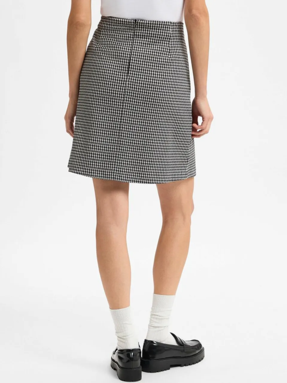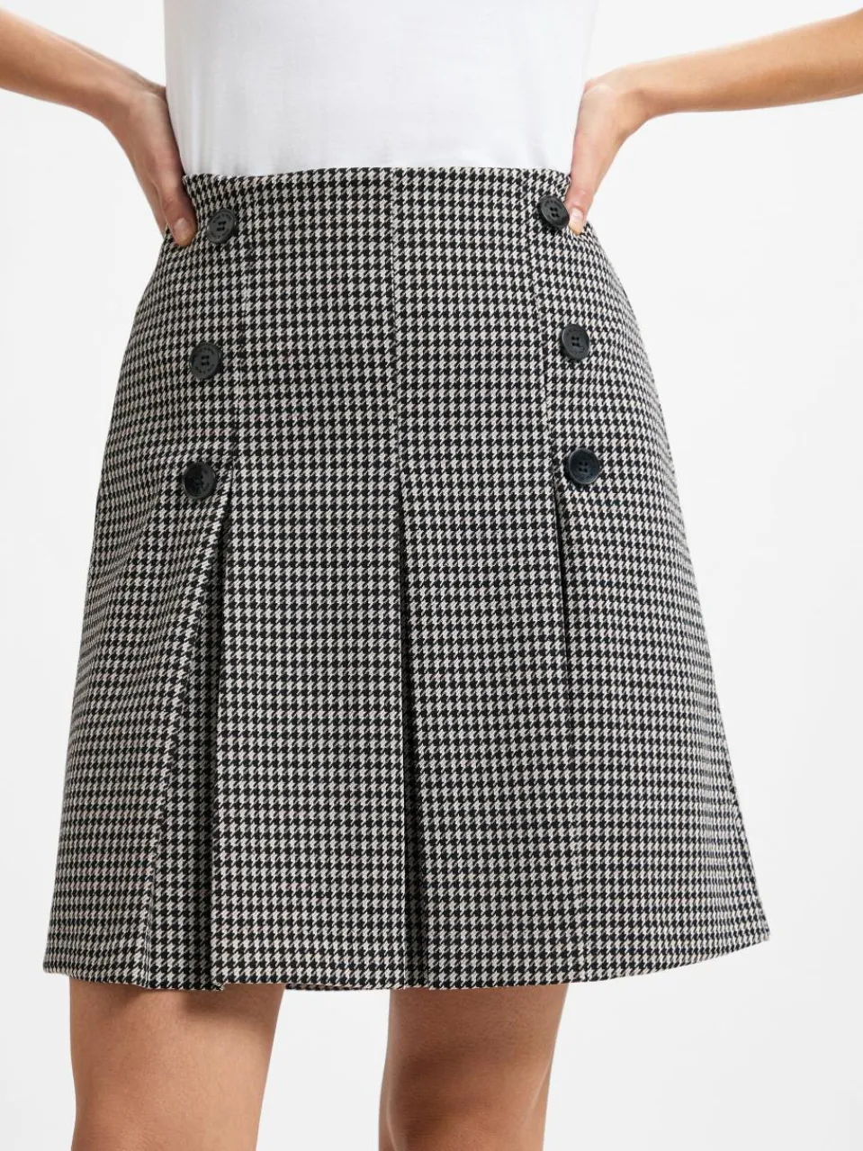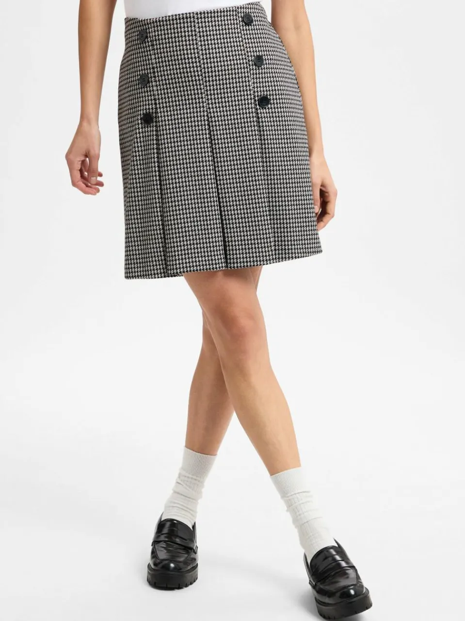 Setzt einen hübschen Retro-Aktzent und lässt sich toll mit Stiefeln kombinieren – der More & More Minirock mit Hahnentritt-Muster, Kellerfalten und dekorativen Knöpfen. Der Rock ist Teil eines Kostüms, kann aber auch allein getragen werden.