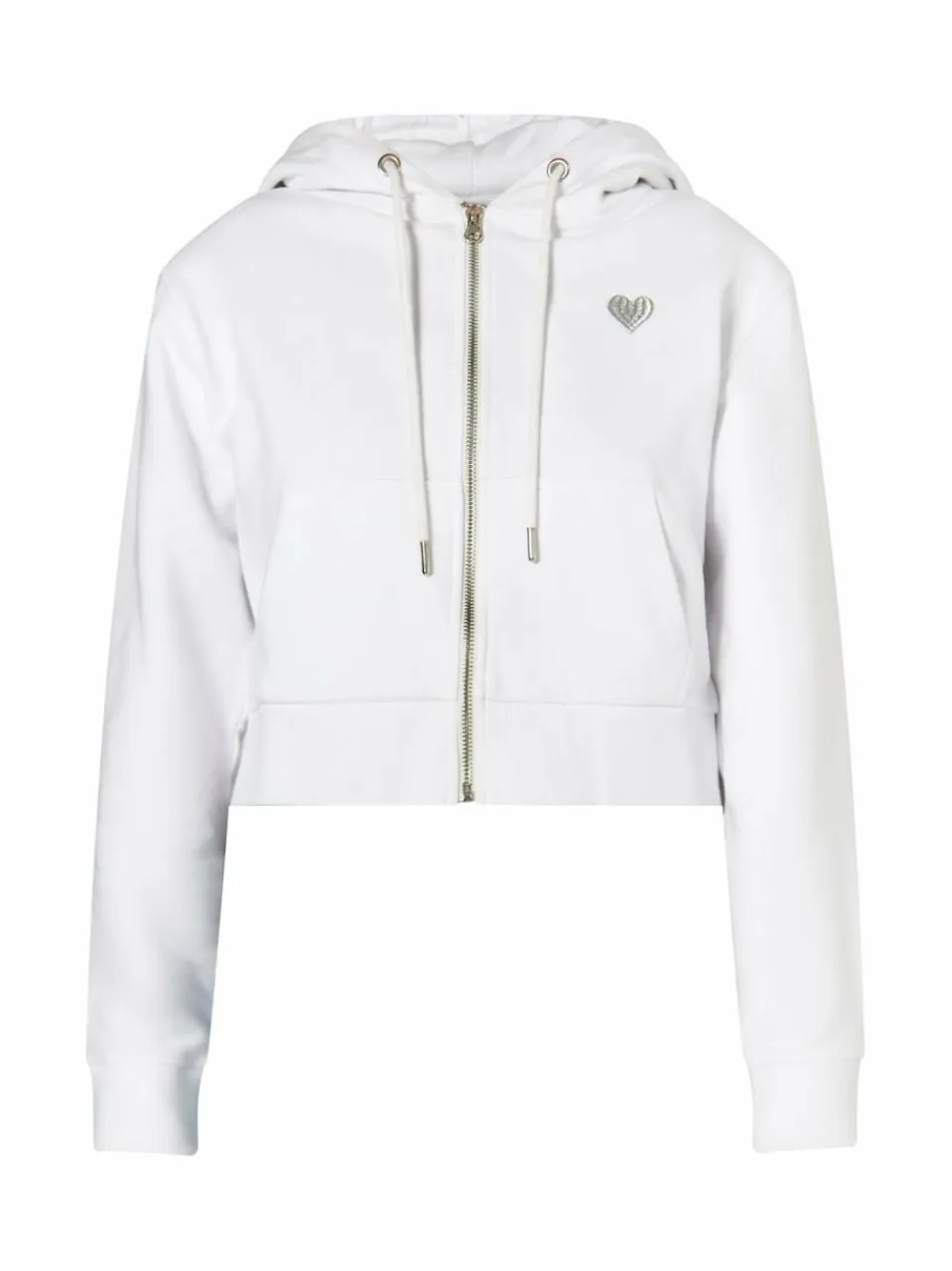 Dieser cropped Zip-Hoodie von myMo aus Baumwolle begeistert mit einer silberglänzenden Herzstickerei auf der Brust. Die gefütterte Kapuze mit Kordel, der durchgehende Reißverschluss und die Kängurutasche ergänzen das Design, dessen verkürzte Passform die Taille betont und deshalb perfekt zu hoch sitzenden Jeans oder Jogginghosen passt.