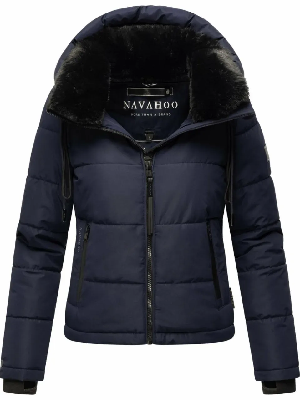 Stylische und warm gefütterte Damen Steppjacke mit großer Kapuze und weichem Kunstfellkragen (beides abnehmbar) von Navahoo – der perfekte Begleiter in der kalten Jahreszeit (Herbst und Winter).