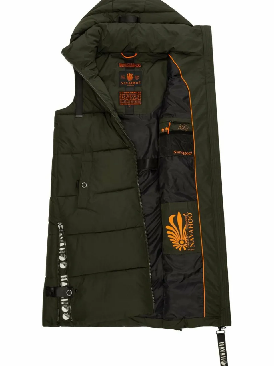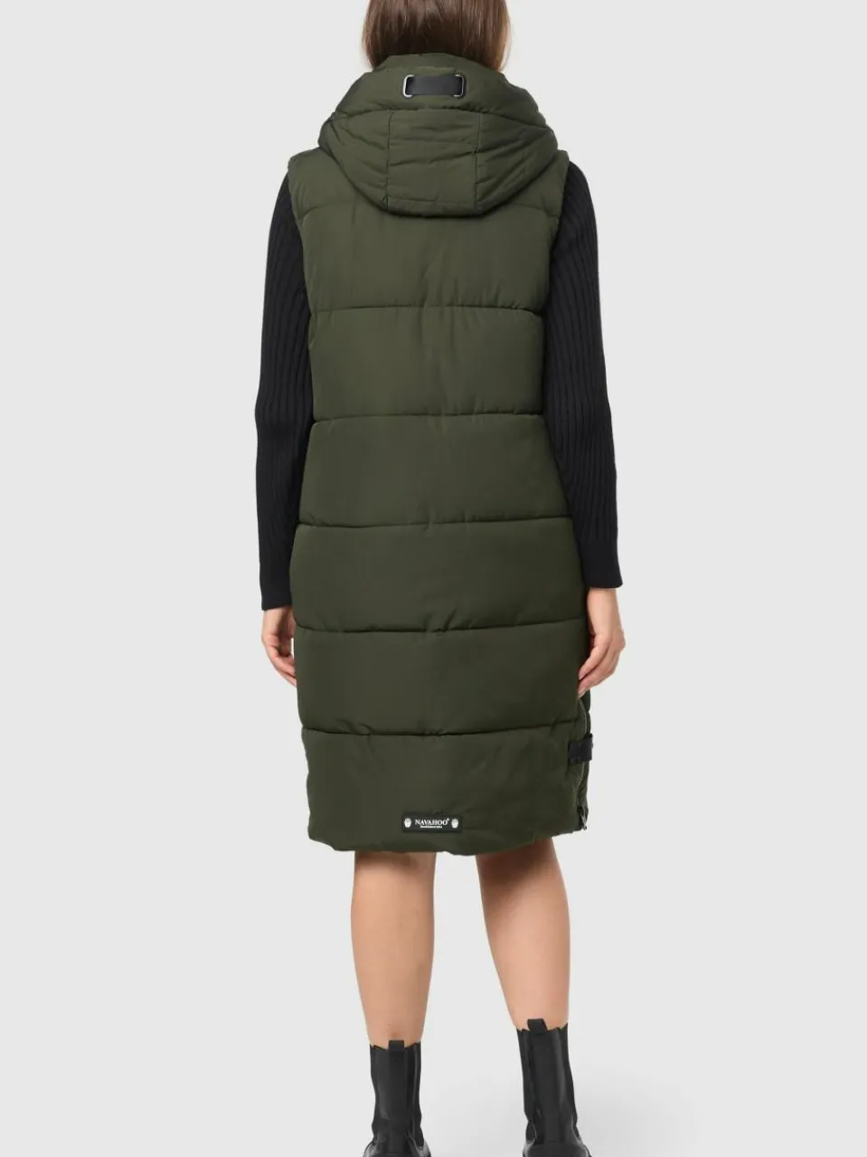 Lange, ärmellose Damen Langweste mit großer, in der Weite verstellbarer Kapuze von Navahoo – richtig kombiniert ist sie ideal geeignet sowohl für die kalte Jahreszeit (Herbst und Winter), aber auch für kühle Tage im Frühling.