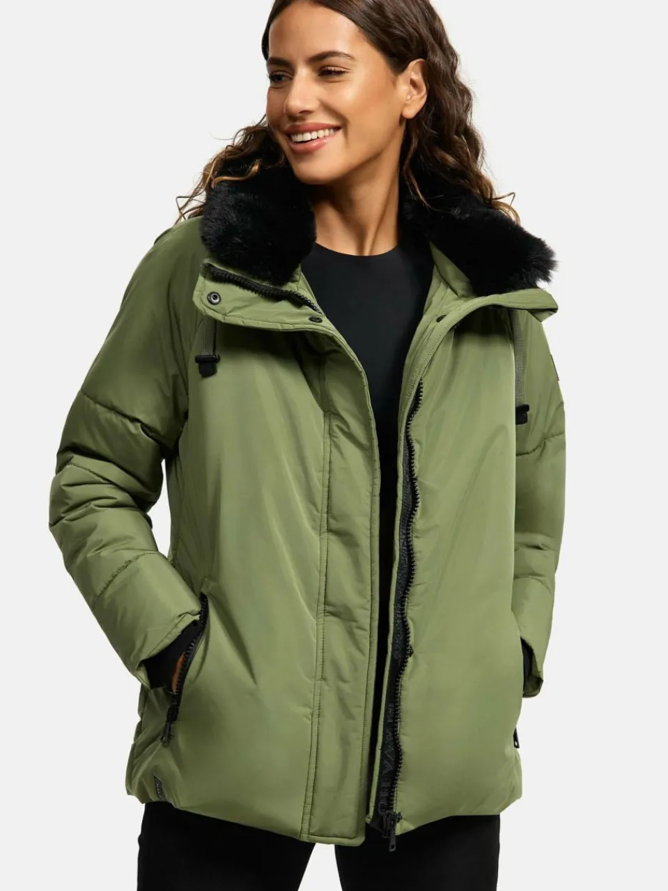 - Modische Damen Winterjacke mit (abnehmbarem) Kunstfellkragen
