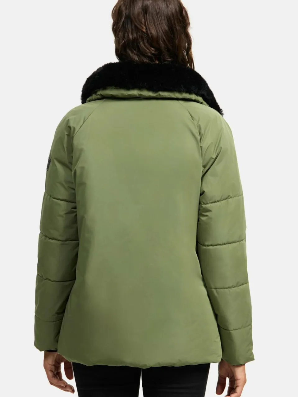 Stylische Winterjacke mit einem abnehmbaren Kunstfellkragen, der nicht nur dem Design eine elegante Note ersetzt, sondern bei Kälte auch noch wunderbar einen Schal ersetzt. Ganz besonders an diesem Modell: am Corpus ist der Stoff glatt, wohingegen die Ärmel gesteppt sind.