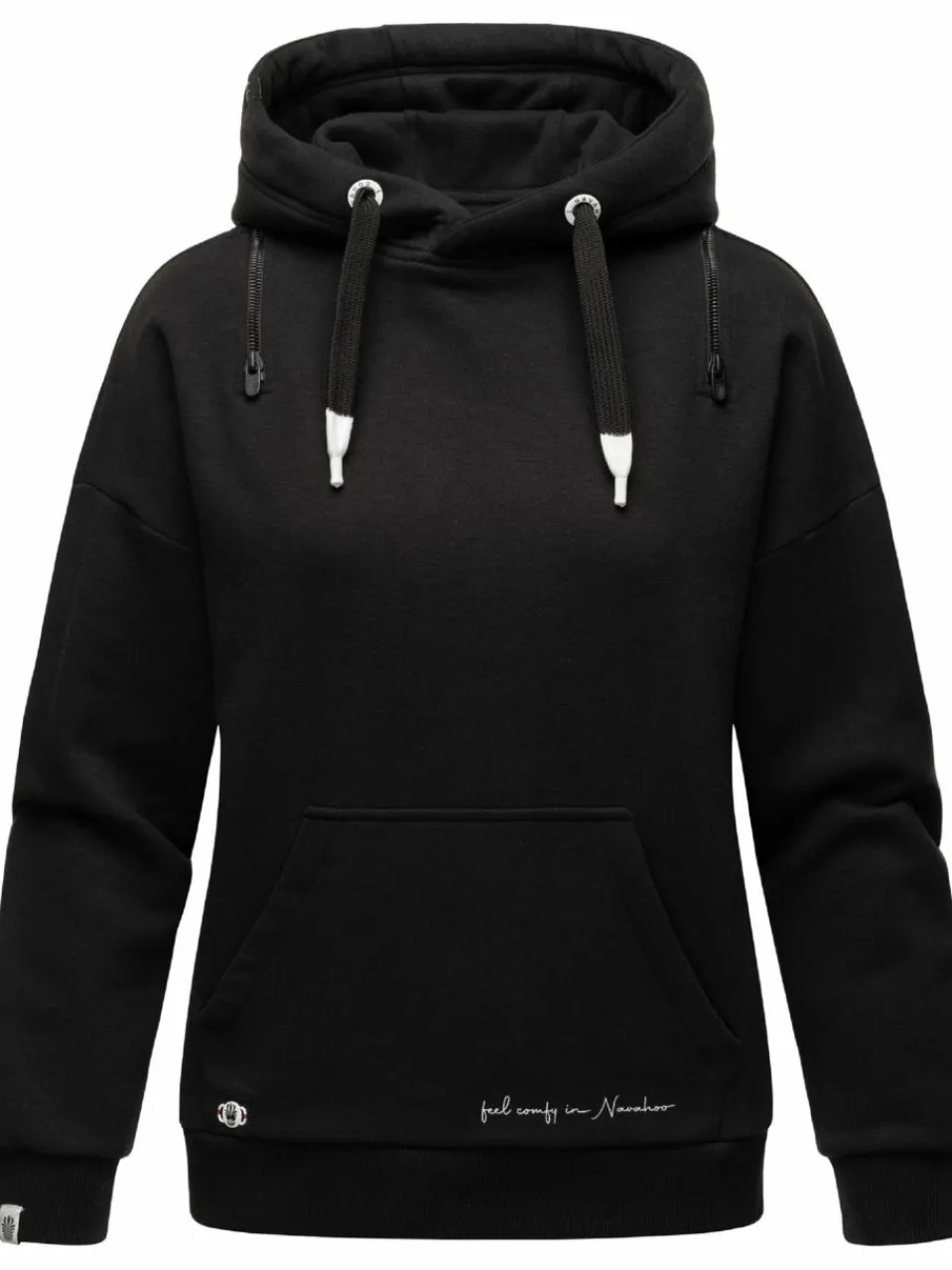 Sportlicher Damen Kapuzenpullover mit breiten Tunnelzug-Kordeln und Reißverschlüssen an den Schultern von Navahoo – ein kuscheliger Allrounder für jede Jahreszeit!