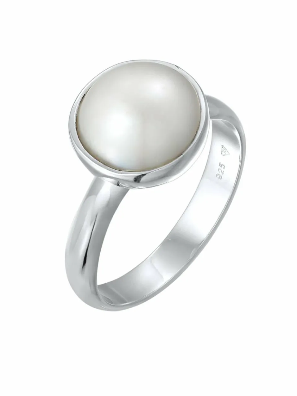 Ein auffallender Perlenring aus feinstem 925er Sterling Silber handgefertigt mittig mit einer halben Mabeperle schlicht gefasst. Dieser schnörkellose jedoch auffallende Perlenring verleiht seiner Trägerin eine ganz besondere romantische Ausstrahlung.