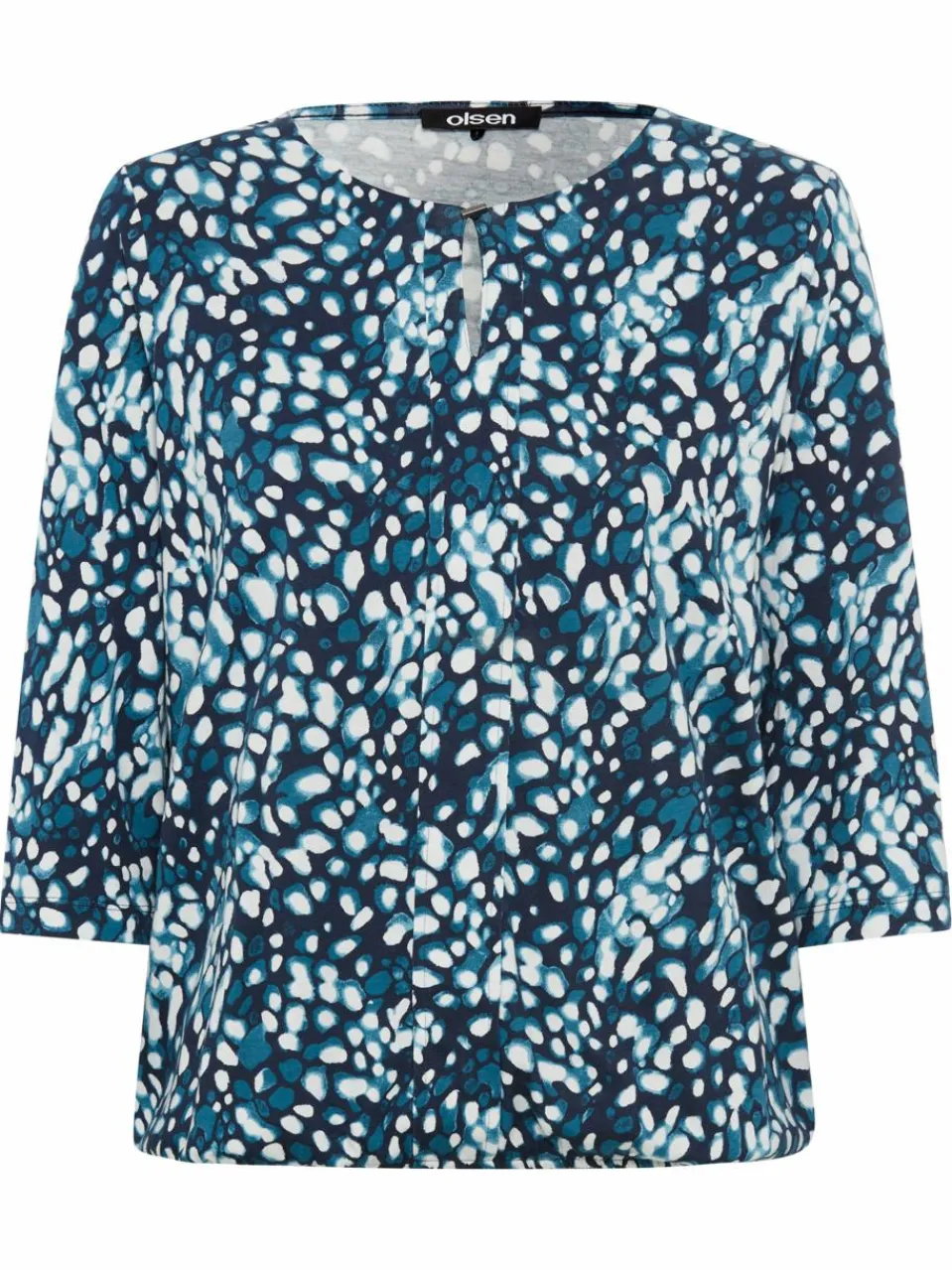 Das gemusterte Longsleeve Clara von Olsen ist locker geschnitten und begeistert mit comfy Details wie dem weiten Rundhalsausschnitt und dem schmalen, elastischen Saumbündchen.