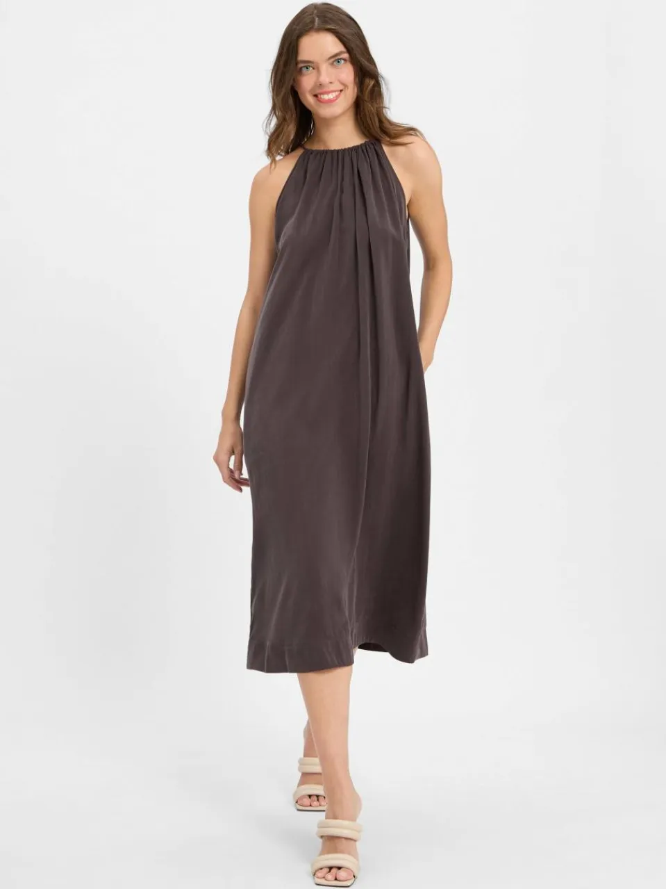 Weites Kleid Widala von Opus aus einem leichtem Modalmix mit Rundhalsausschnitt und Schnürung hinten im ärmellosen Design mit nahtverdeckten Taschen – ideal für warme Tage.