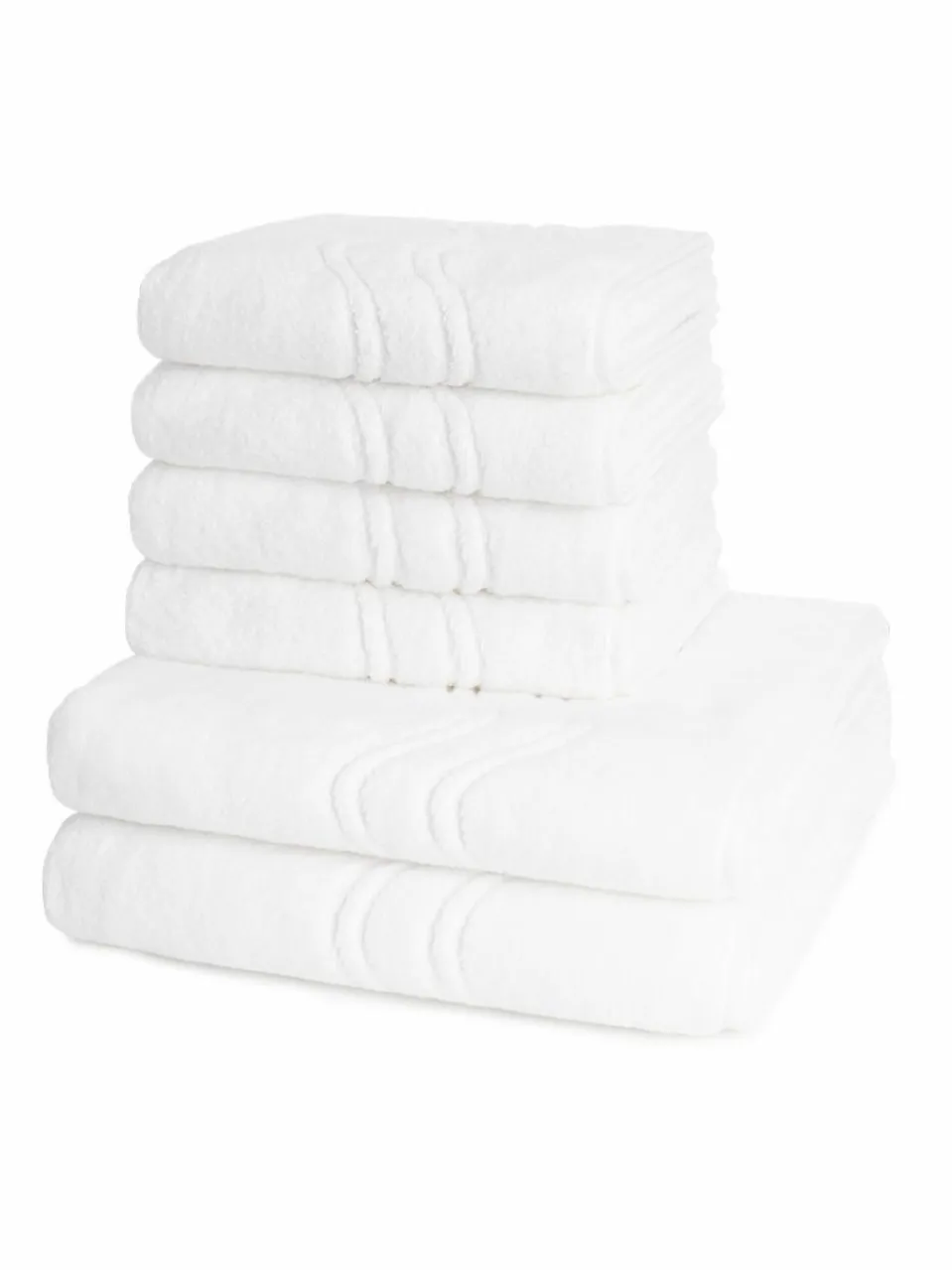 Die Serie Cashmere feeling mit Wellenmuster überzeucht mit hohen Saugfähigkeit und einem sehr weichen Griff. Die Uni-Walk-Frottier-Serie mit einem Aufhänger-Kordel sort für einen hohen Wohlfühlfaktor und sorgt mit tollen Farben für die passenden Akzente im Bad. Set besteht aus 4 X Handtuch (50 X 100cm); 2 X Duschtuch (75 X 140cm).