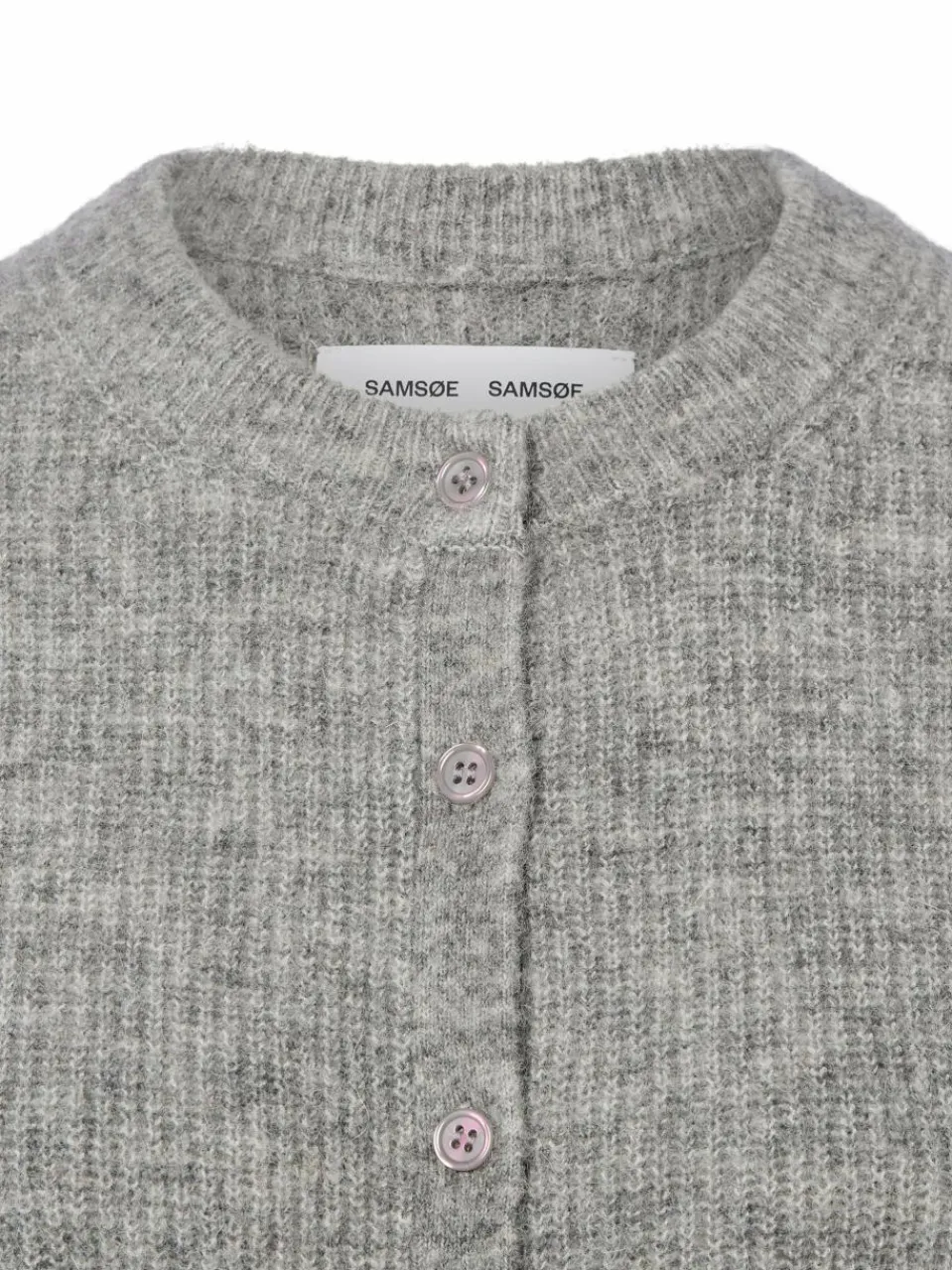 Die Strickjacke Saanoura von Samsøe Samsøe ist nicht nur kuschelig dank der Woll-Mix-Verarbeitung mit Alpaka-Anteil, sondern ist mit lässiger Passform auch eine coole Ergänzung für die Freizeitgarderobe.