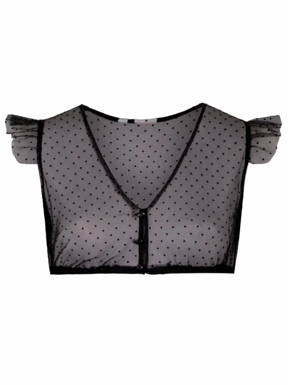Für einen stilbewussten Trachtenauftritt ist die Dirndlbluse ‚Genta‘ von Spieth & Wensky die perfekte Ergänzung. Die 34 cm kurze, transparente Bluse besticht vor allem durch ihr verspieltes Punktemuster und den feinen Spitzenstoff. Mit tiefem V-Ausschnitt, kurzen Ärmeln und 3er-Knopfleiste ist ‚Genta‘ nicht nur schön, sondern auch bequem zu tragen – und damit ein besonderes Stück in Ihrer Garderobe.