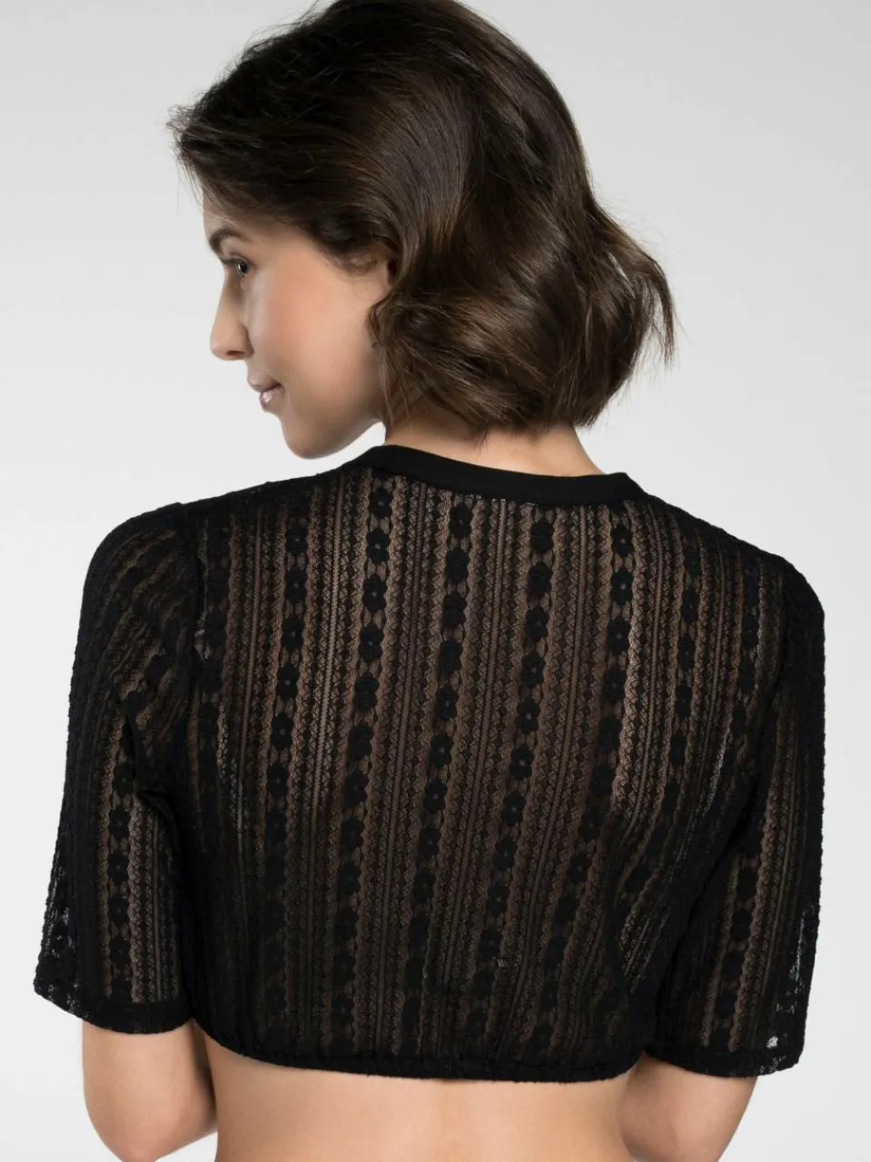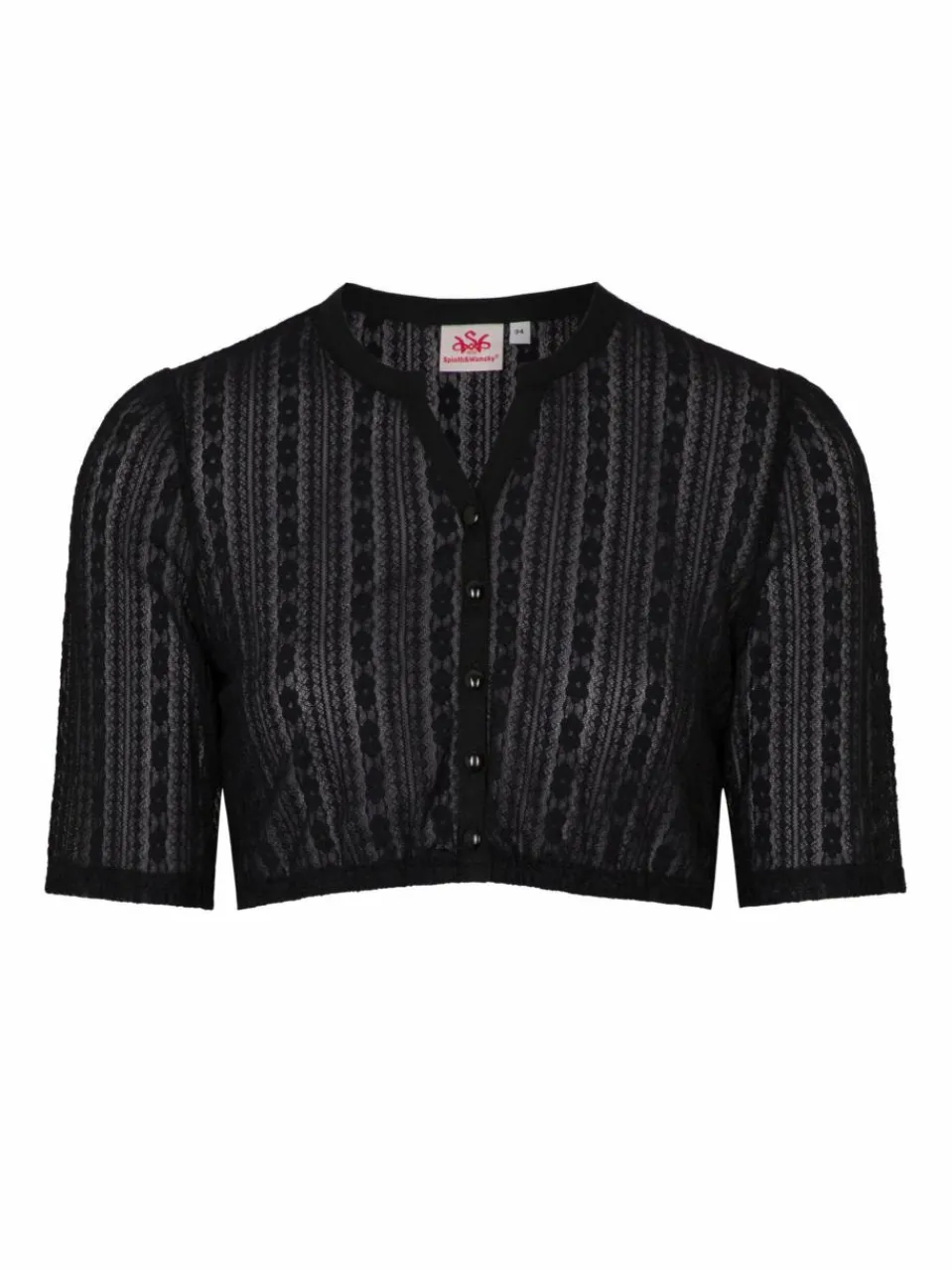 Eine Attraktion für festliche Anlässe ist die Dirndlbluse ‚Fannah‘ von Spieth & Wensky. Charakteristisch für die Bluse sind in erster Linie die Allover-Spitze, halbe Ärmellänge sowie der V-Ausschnitt. Die kurze Länge sowie die Knopfreihe unterstreicht dabei zusätzlich den traditionellen und eleganten Charme der Dirndlbluse. So ist ‚Fannah‘ ein ideales Accessoire für den stilvollen Trachtenlook.