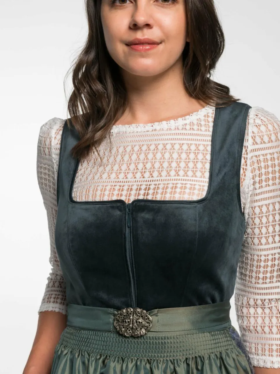Dieses Midi-Dirndl verkörpert Eleganz und Tradition in perfekter Harmonie! Mit einer Länge von 70 cm und einer Metallschließe als Verschluss ist es ein zeitloser Klassiker. Der Reißverschluss vorne und der eckige Ausschnitt verleihen ihm einen modernen Touch.