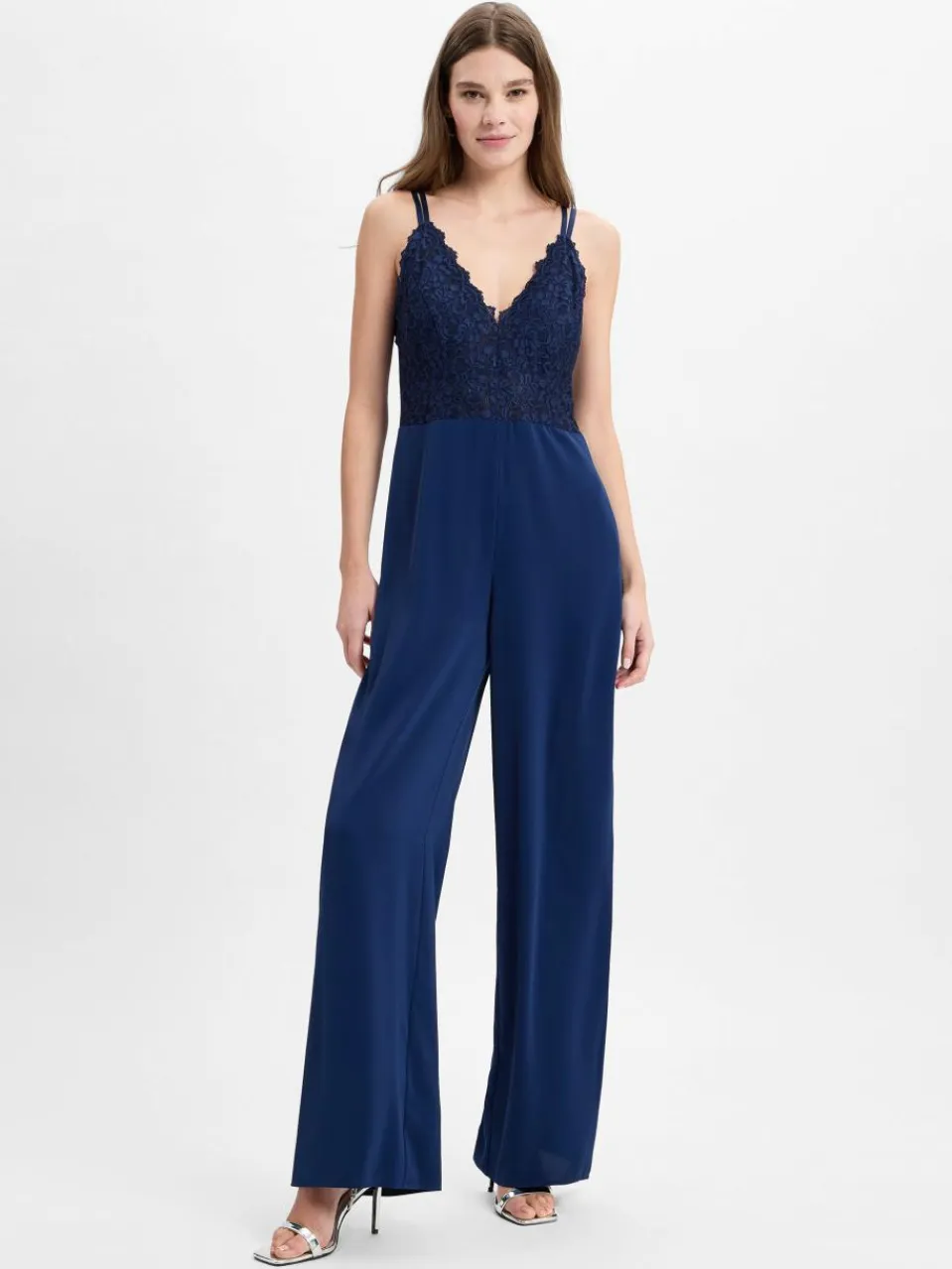 Der Suddenly Princess Jumpsuit mit Spitzen-Besatz ist ein elegantes Abend-Outfit, das durch seine Kombination aus fließender Kunstfaser-Qualität und femininer Spitze besticht.