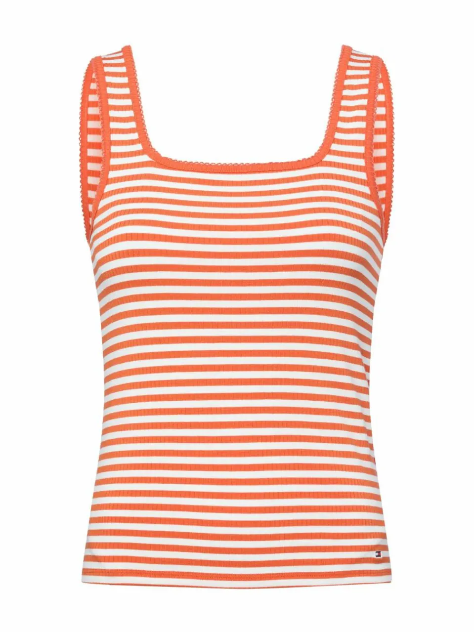 Feine Picots zieren die Ausschnittlinie des Tommy Hilfiger Tops und machen es zu einem charmanten Blickfang unter Blusen oder Strickjacken.